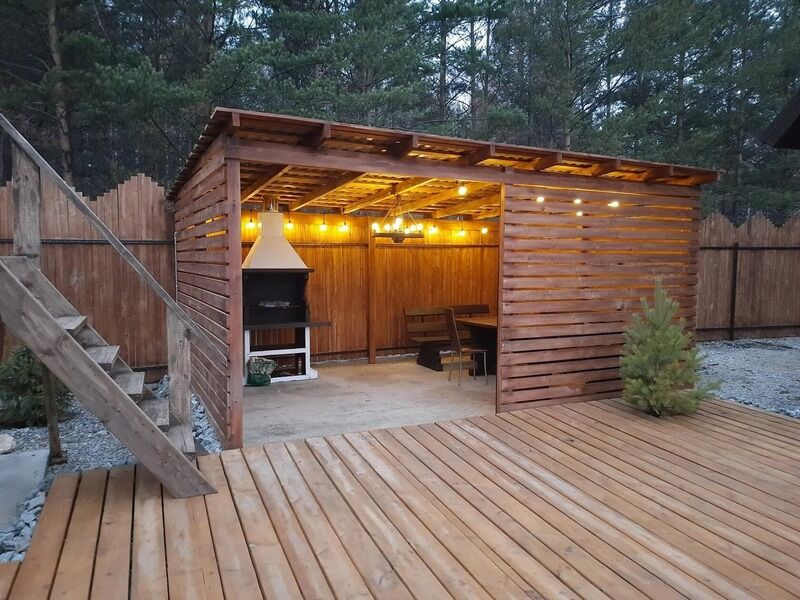 Территория в зоне отдыха выстелена деревянным настилом , что обеспечивает чистоту и комфорт Вашего отдыха.