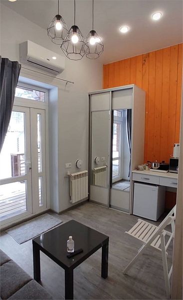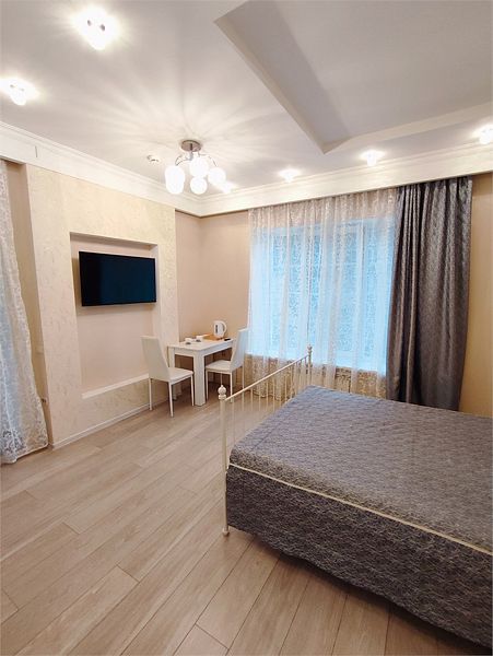 Комфортно разместиться в апартаментах студия смогут 2 человека (одна двуспальная кровать).