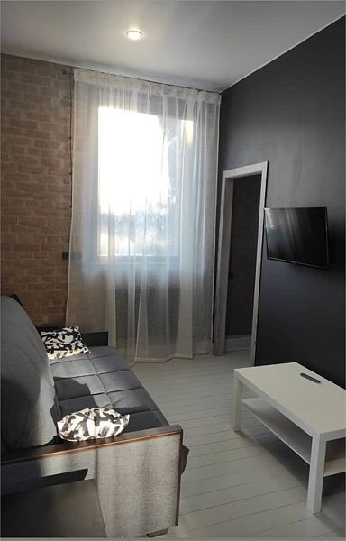 Комфортно разместиться в апартаментах студия смогут 4 человек (двуспальная кровать и раскладной диван).