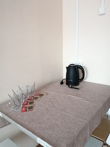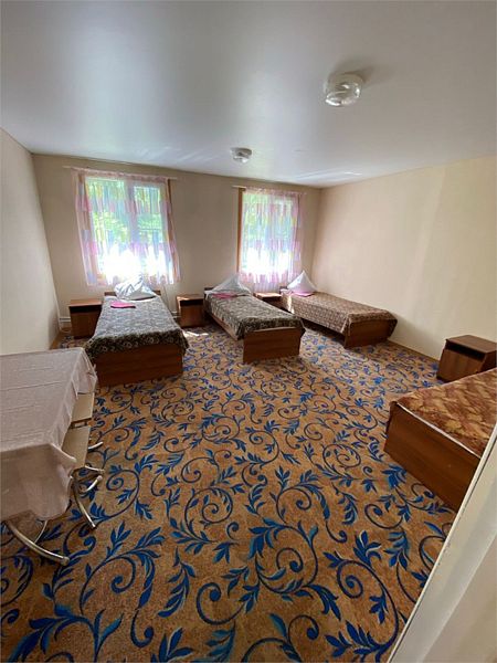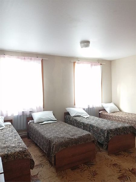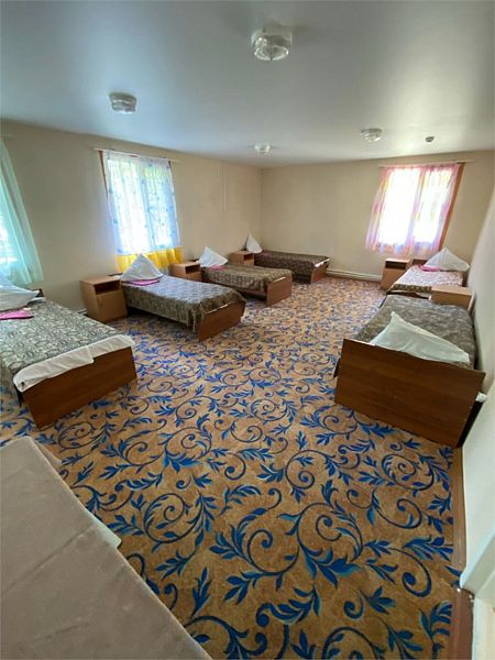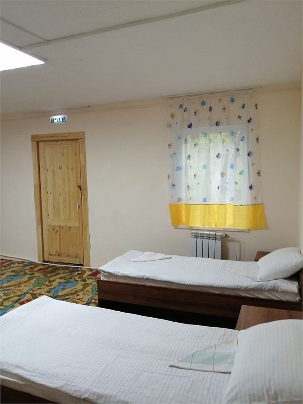 Номера в корпусе бывшего детского лагеря. Все удобства на этаже: общая кухня, сан. узлы, душевые + умывальники.