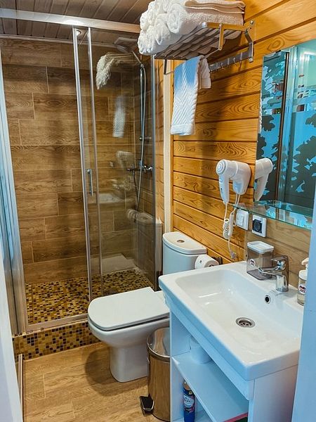Недостатки12500 это дорого. В комнате нет микроволновой печи, питьевой воды, окна не открываются чтоб проветрить помещение, на втором этаже очень душно спать, что делается в туалете и душевой видно с комнаты. Для детей никаких развлечений нет.