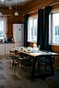 - большая комната с кухней, обеденной зоной, диваном и телевизором ,