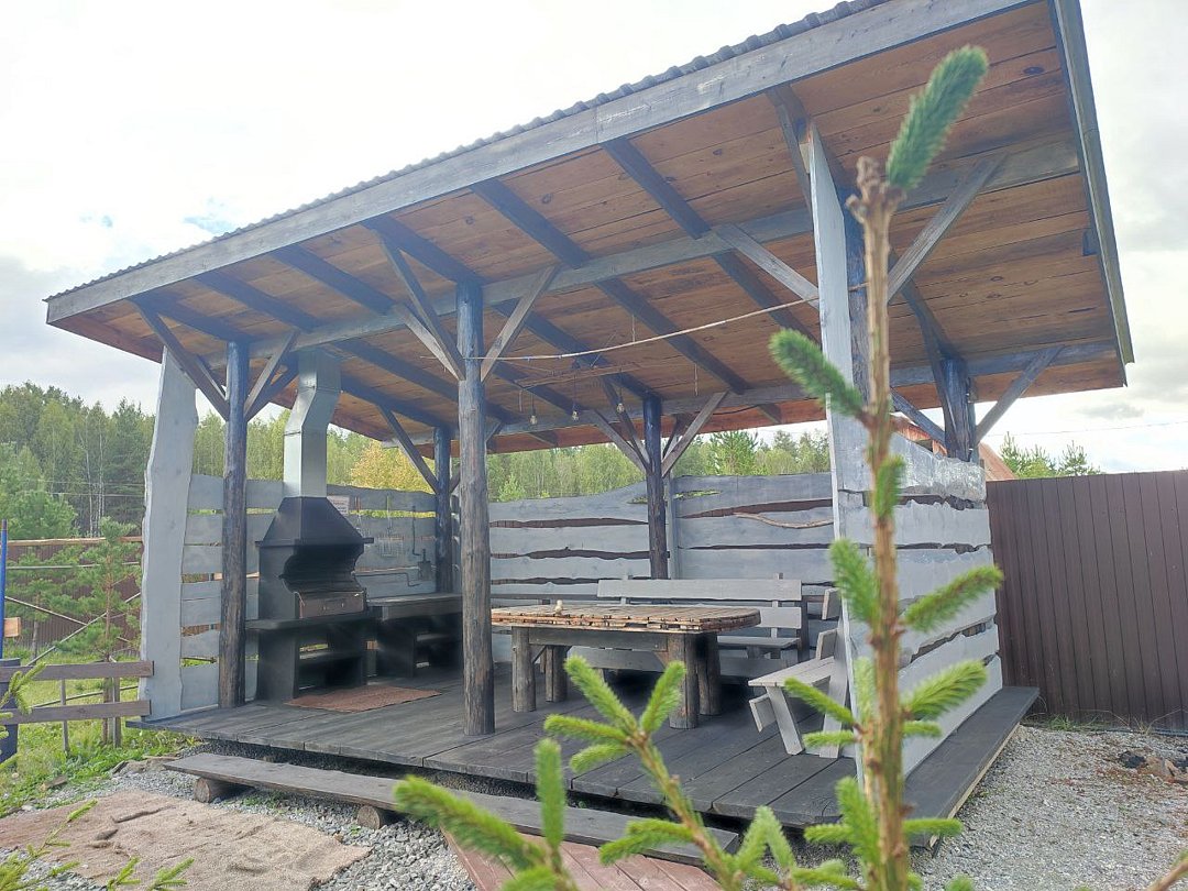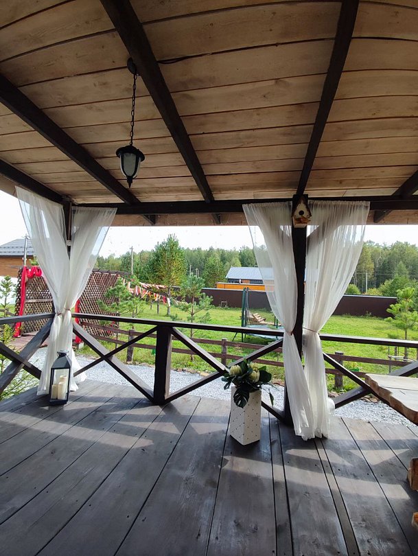 На территории есть одноэтажный дом, зона для барбекю, баня, чан, большая площадка для детей и крытый бассейн летом.