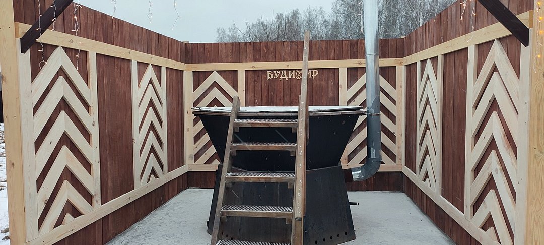 Ритуал парения в банном чане поистине можно назвать чудодейственным: в меру горячая вода прогревает тело медленнее и глубже, чем горячий сухой пар, и все это в окружении леса, с положительной энергетикой и на свежем воздухе.