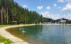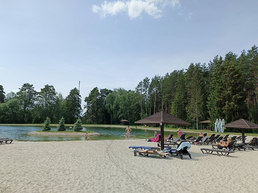 На территории комплекса находится живописное озеро с песчаным пляжем с бесплатными лежаками и зонтиками. Вокруг озера — несколько беседок с мангалами, идеально подходящих для отдыха с шашлыками на природе в компании друзей и близких.