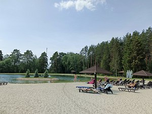 Тип пляжа: песчаныйИнфраструктура: лежаки, зонтики, шезлонгиНа территории поселка есть красивое озеро с шикарным песочным пляжем, зонты и лежаки бесплатные.