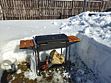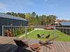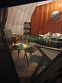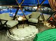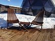 На террасе кресла-шезлонги со столиком, рядом костровая чаша-мангал с решеткой для шашлыков и барбекю, 4 кресла-шезлонга вокруг.