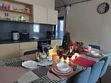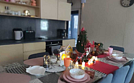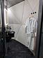 Две спальни по 12 кв. м. с панорамным видом и выходом на веранду, 1 двуспальная кровать и 2 односпальные кровати, кухня-гостиная 28 кв. м. с огромным дизайнерским столом на 10 человек, диваном со спальным местом 150*200, всей встроенной техникой, включая большой холодильник с морозилкой, посудомойка , духовка, варочная плита, санузел с душевой, стиралкой, гардеробная с утюгом, гладилкой, веранда 2,4х5,5м с диваном и столиком. Удобная и стильная мебель, вся необходимая посуда, чистое белье, банные халаты и полотенца, также мыльные принадлежности.
