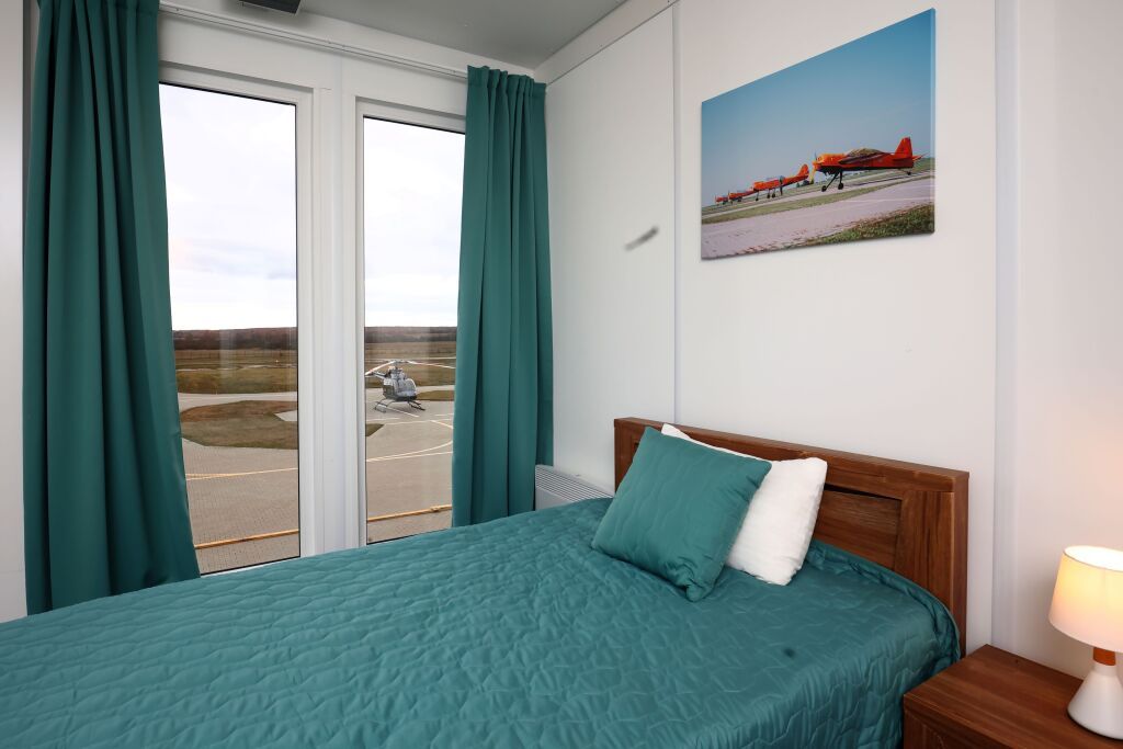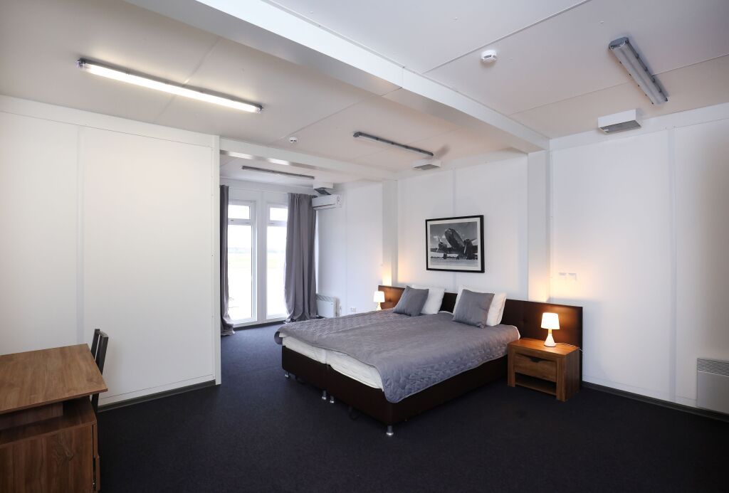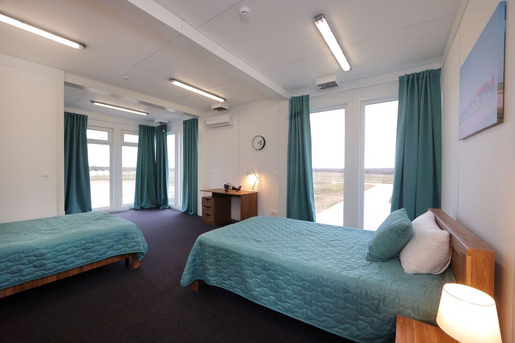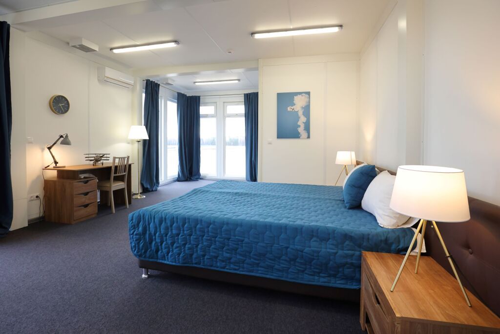Номер «Комфорт» двухместный с панорамными окнами и видом на аэродром в главном корпусе.