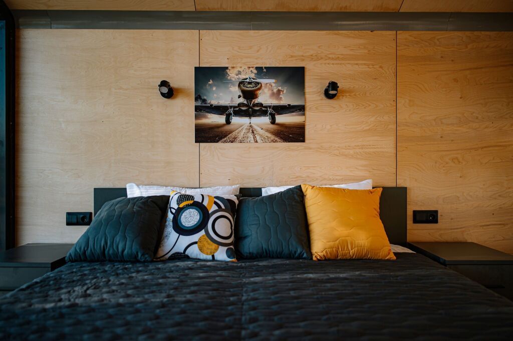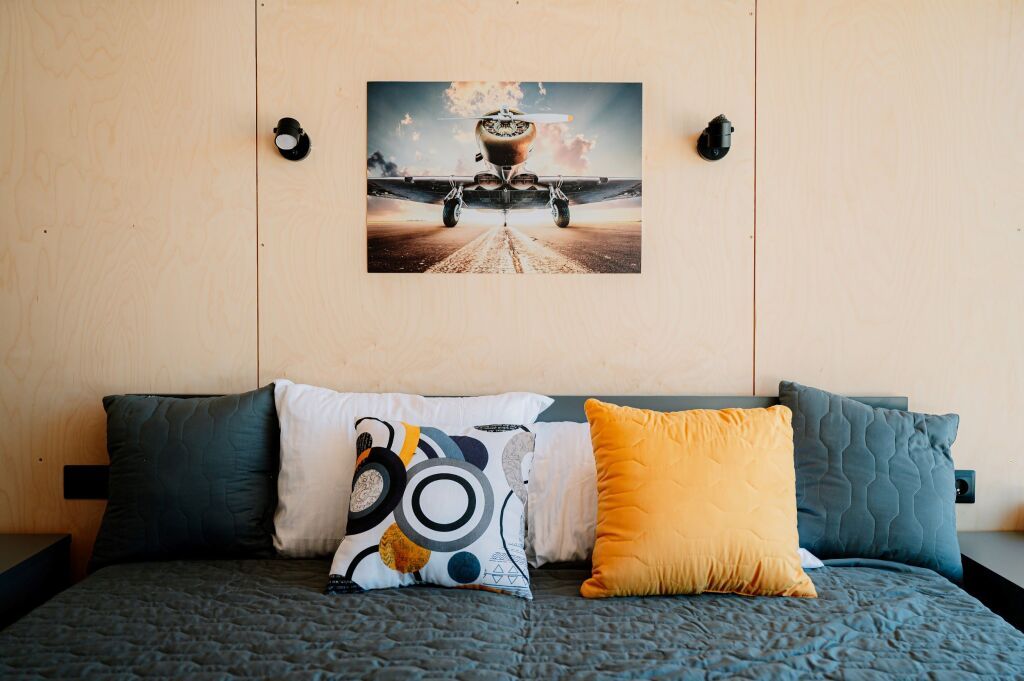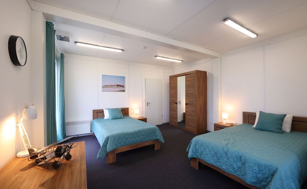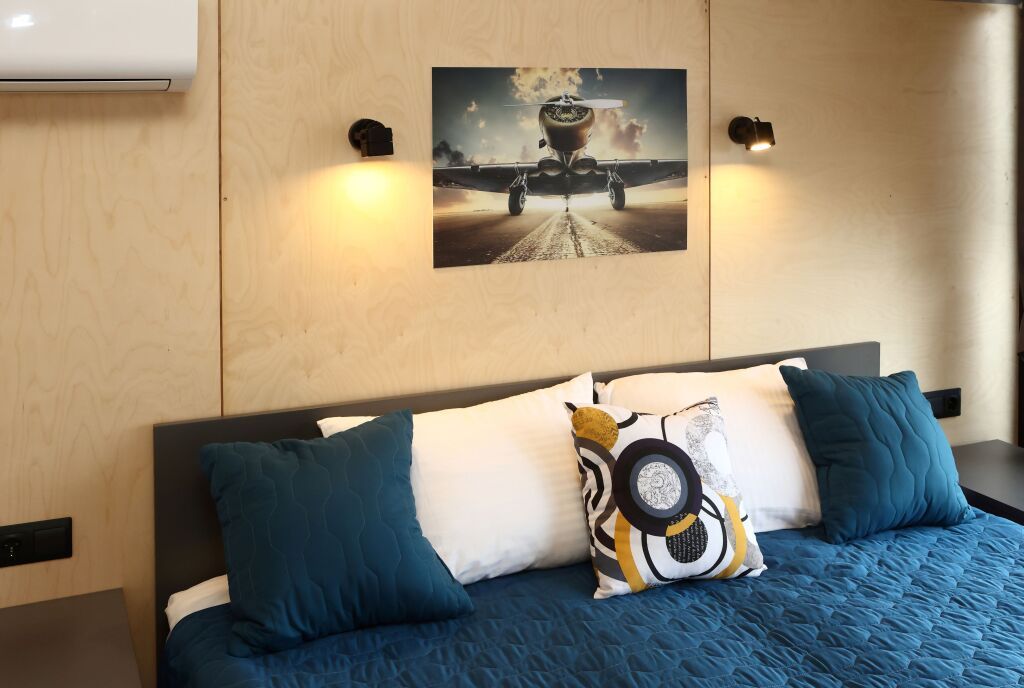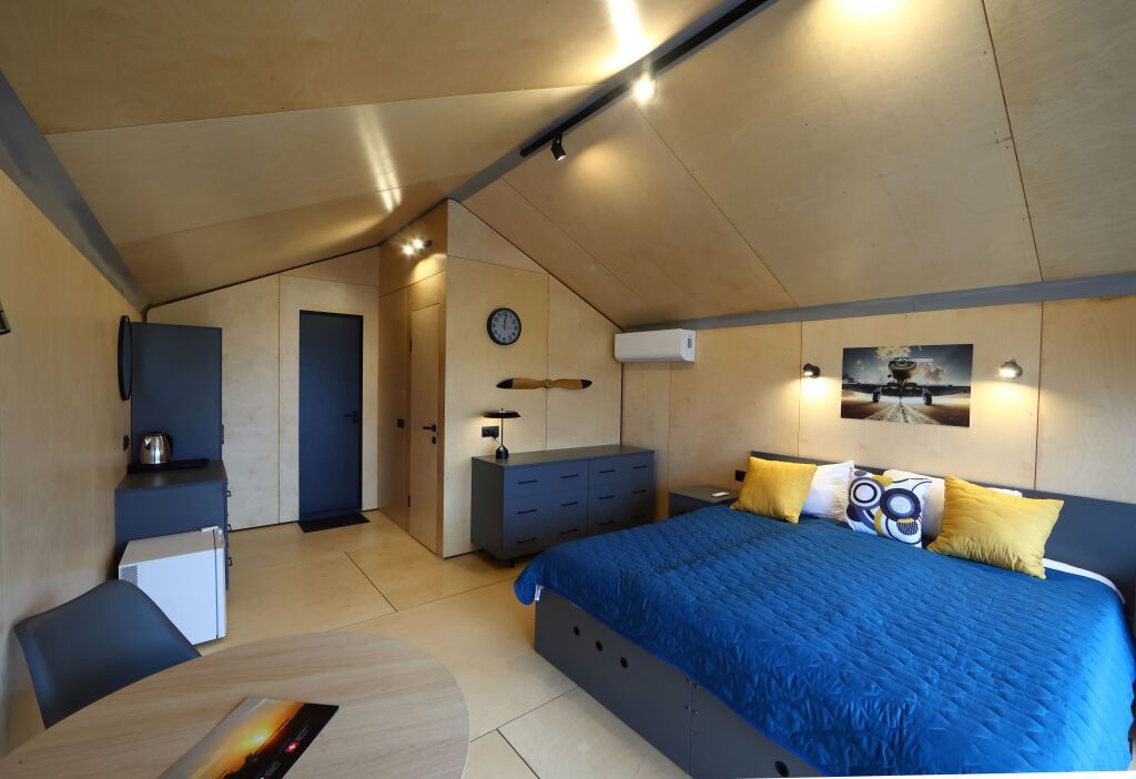 Номер «Комфорт» двухместный с панорамными окнами и видом на аэродром в главном корпусе.