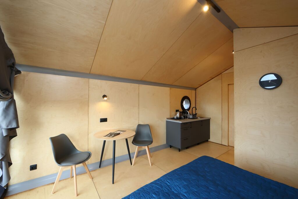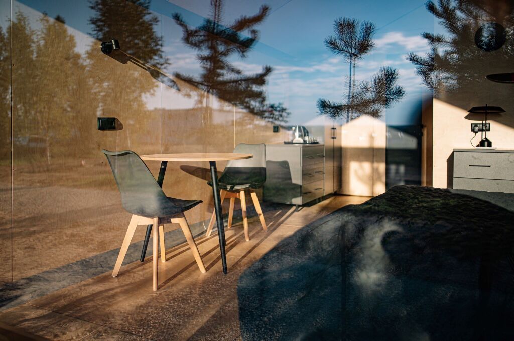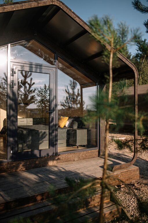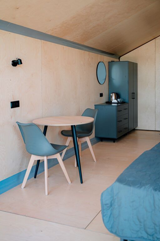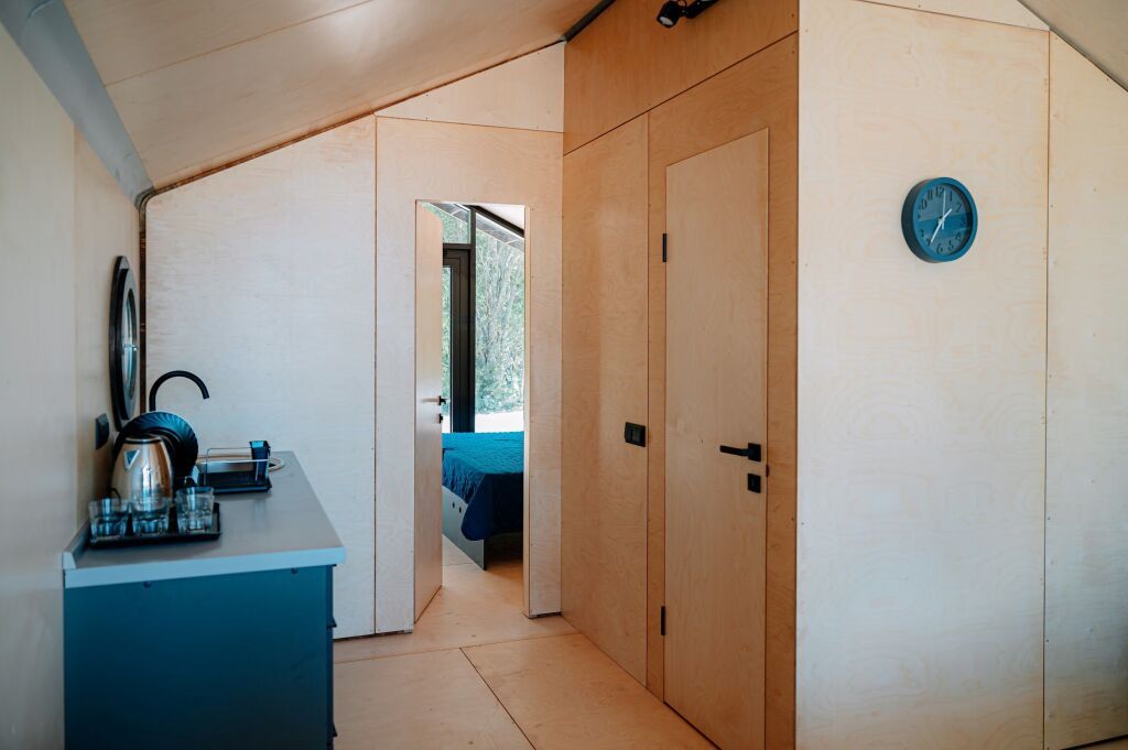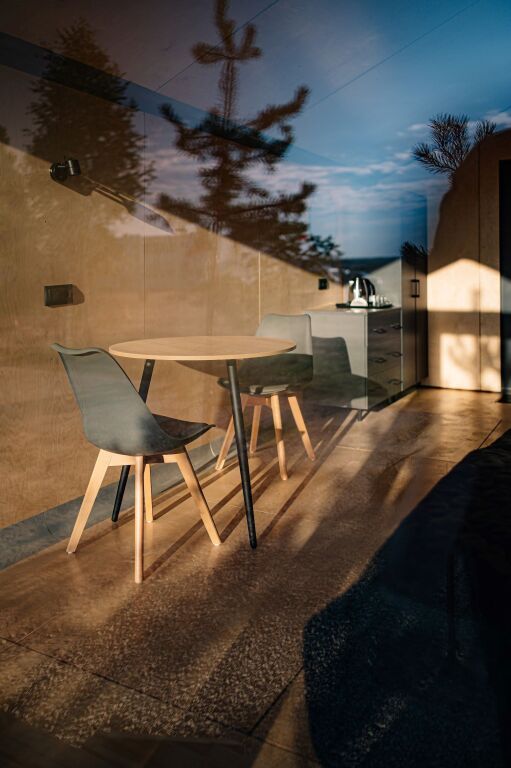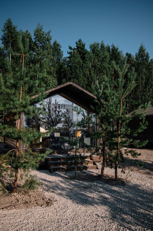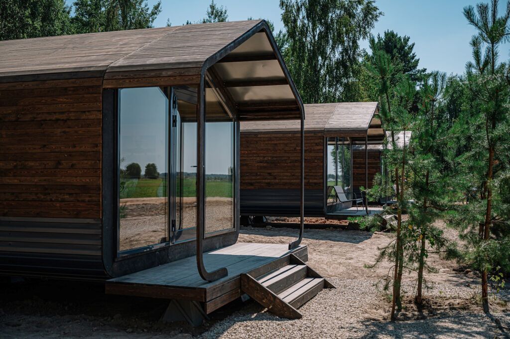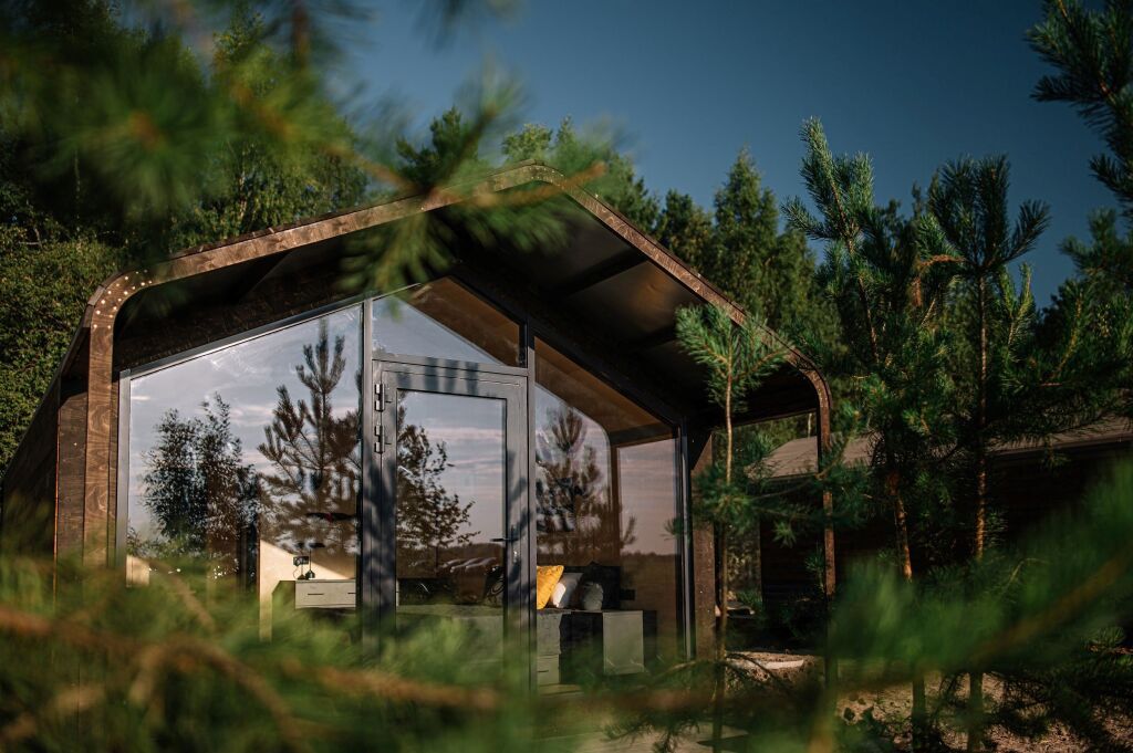 Гостиничный комплекс включает пять экологичных коттеджей и десять номеров, оснащенных всем необходимым для комфортного проживания. В коттеджах есть мини-кухни, панорамные окна и террасы для отдыха.