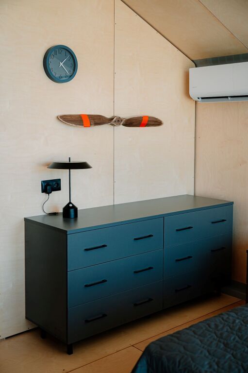 НедостаткиБронировали на сайте домик, в итоге позвонили и сказали, что есть только номер в гостинице, снять что-то ещё уже не представлялось возможности, поехали, хотелось романтики в итоге получили, стандартный номер очень далёкий от романтики, в номере письменный стол и три кровати, хорошо хоть были полотенца, более ничего, не тапок, не халатов, не чайника, не холодильника, не телевизора, не посуды, не....окна панорамные с видом на...ангар и канализационные люки, всё в муках! Территория только в начале облагораживания, идёт стройка, озеро заросшее, не ухоженные, самолётов не видели не одного, ну в общем, отдых нам ничто не могло омрачить, но.... не благодаря базе!)