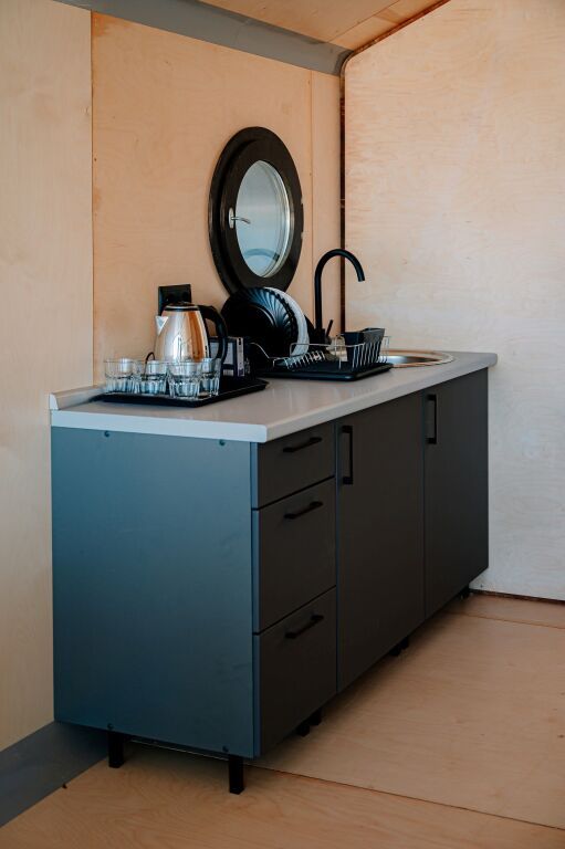 - мини-кухня (чайник, холодильник, необходимый набор посуды)