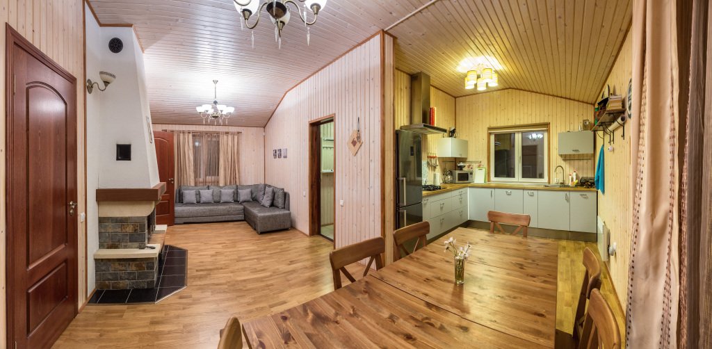 Есть все удобства (горячая и холодная вода, канализация). Коттедж оснащен всем необходимым для комфортного проживания: современная мебель, бытовая техника, спутниковое ТВ. Отопление: теплый пол, электроконвекторы, камин.