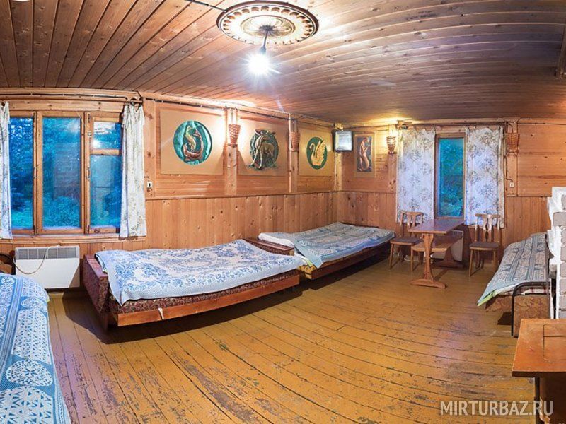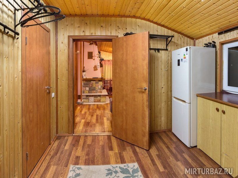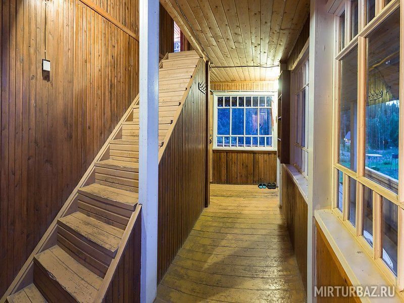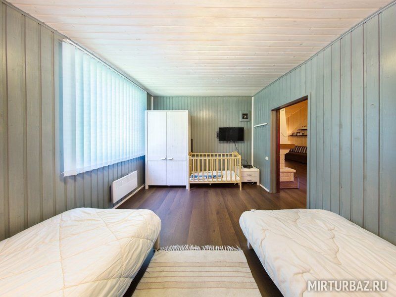 Первый этаж: веранда, кухня-столовая с печью и холодильником, спальня на четыре кровати, теннисный зал, с/узел, баня.
