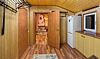 В доме есть все удобства (горячая и холодная вода, канализация). Внутри дома есть камин и плита на дровах, а также настоящая баня с душем. На кухне находится газовая плита.