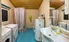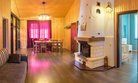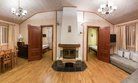 Оснащен новой современной мебелью, сантехникой, аудио-видео и бытовой техникой, спутниковым ТВ. В гостиной находится камин. Отопление: теплый пол, электроконвекторы. Есть все удобства (горячая и холодная вода, канализация). Рядом находиться баня, входит в стоимость.