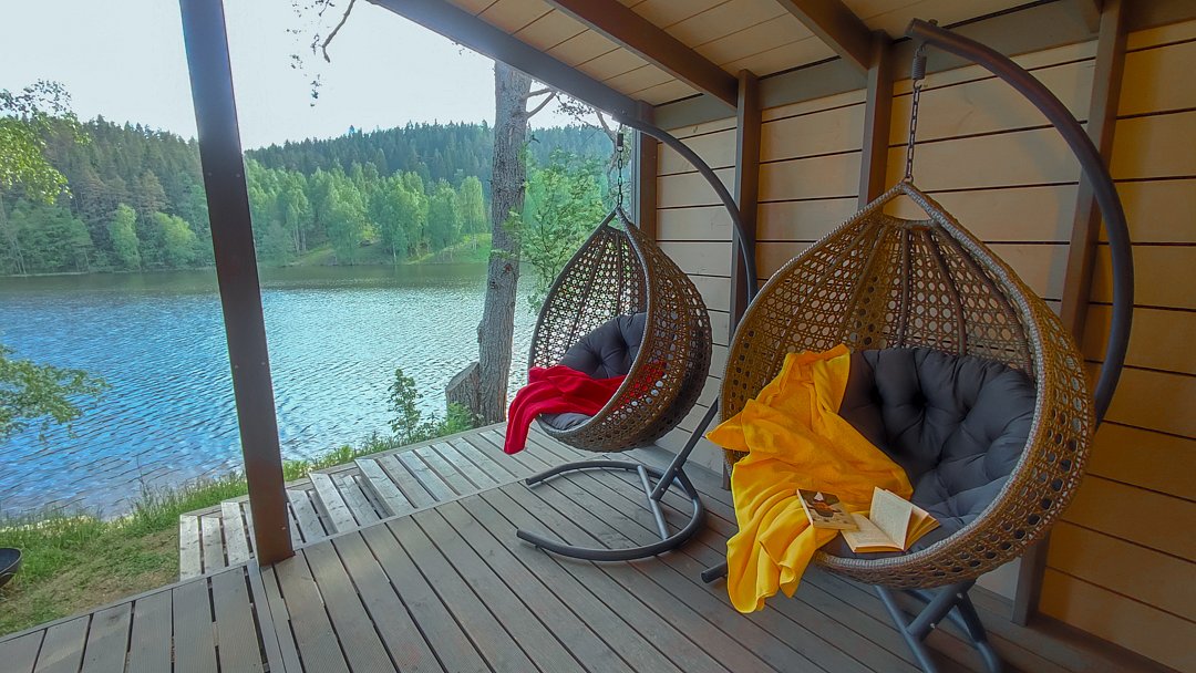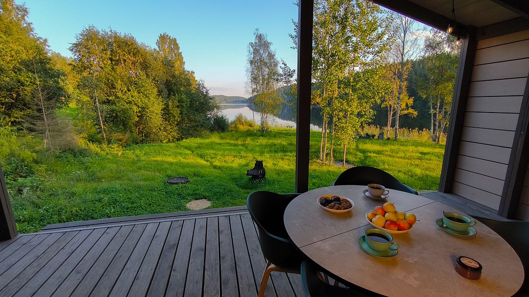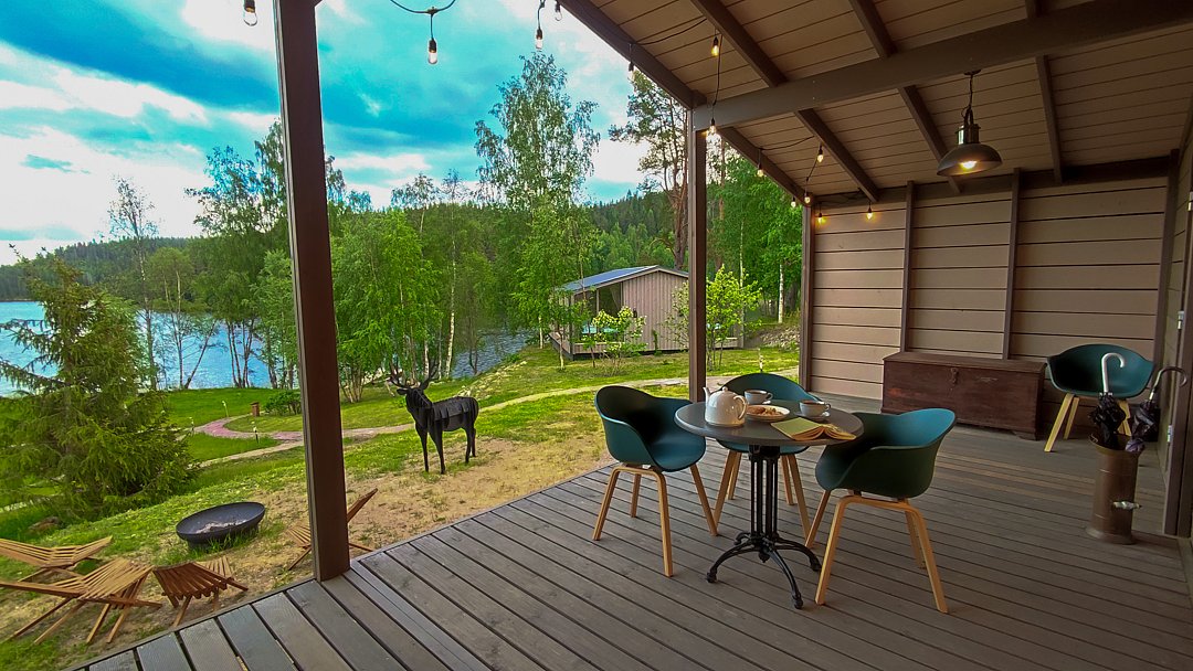 С террасы коттеджа открывается 2 километровая панорама на гладь озера. Терраса 25 кв.м.