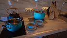 - чайник и посуда в Вашем распоряжении (кастрюли, сковородки, мисочки, салатницы, пиалки, тарелки, чашечки, фужеры, столовые приборы, прихватки для горячего, полотенца и др.), смотрите фотографии.