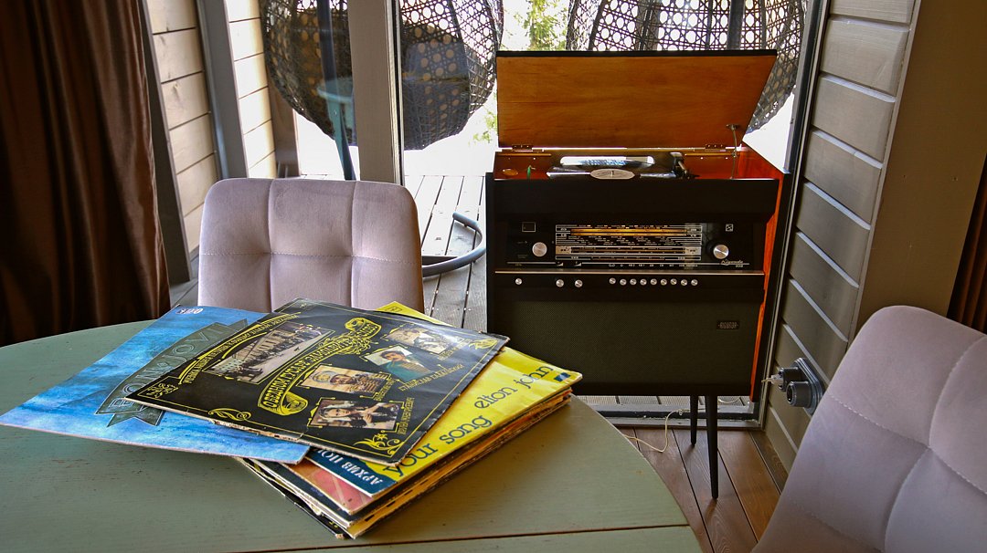 - старинное шикарное зеркало в раме с резьбой. Старинная чугунная печь-камин в форме маяка. Когда внутри горит огонь, сквозь окошки из слюды во все стороны видны отблески пламени. Винтажный проигрыватель пластинок Ригонда, прошедший реставрацию. Играет как винил, так и флэшку. Стильное и удобное тантра-кресло для медитации и глубокого релакса;