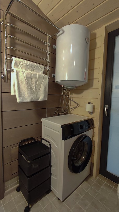 - изолированная ванная комната. Оборудованная кухня, спальная зона и гостиная имеют единое гармоничное пространство. Коттедж позволяет комфортно разместиться двум гостям.