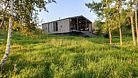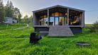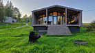 - коттедж-студия, без внутренних перегородок. Окна на три стороны света. При этом одна стена — панорамная стена-окно;