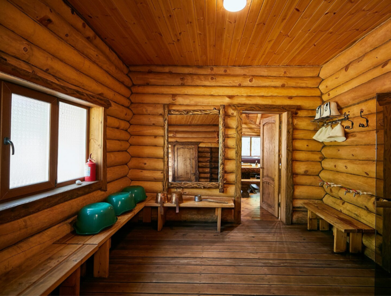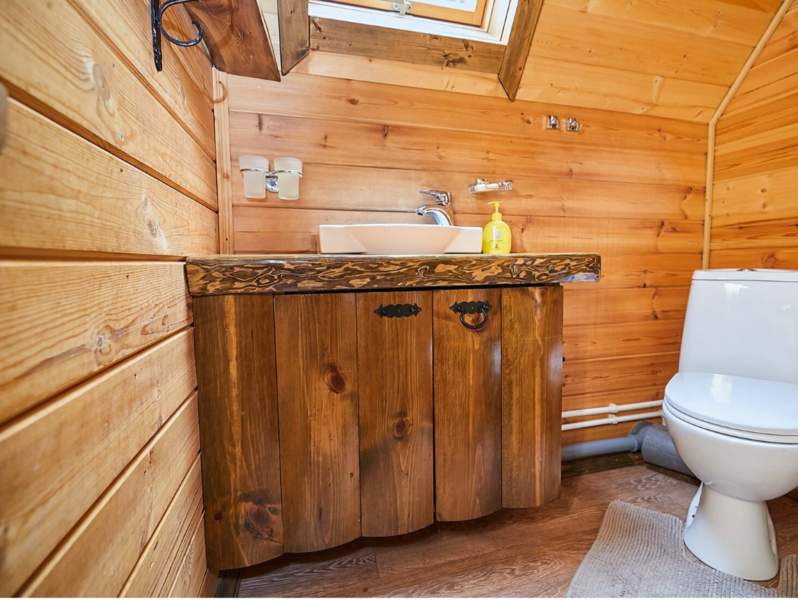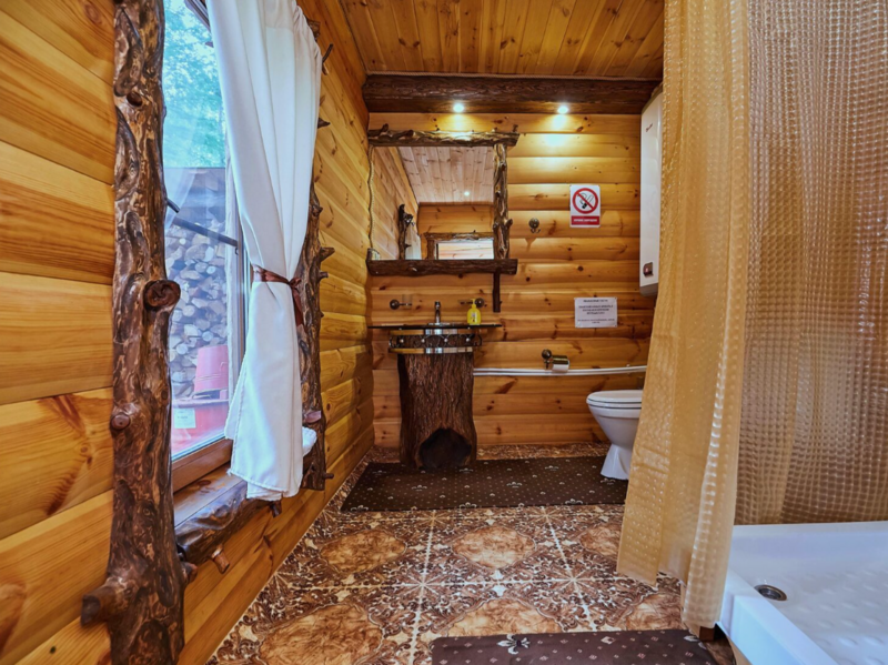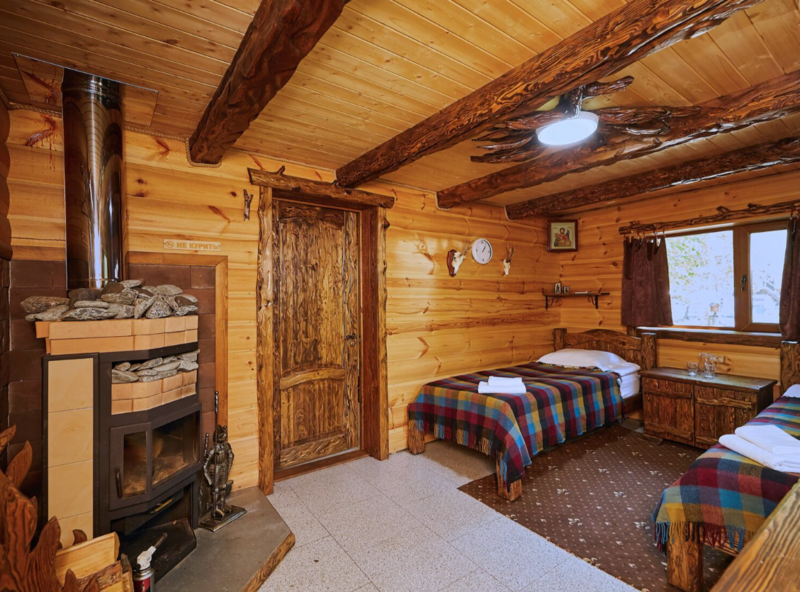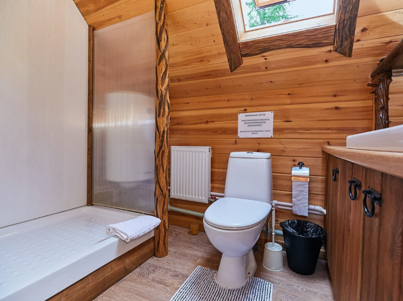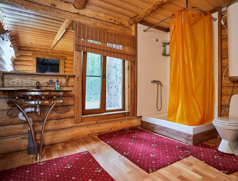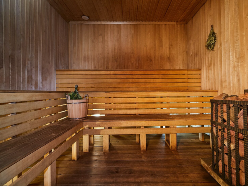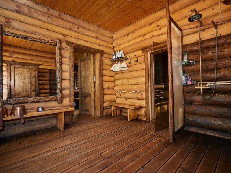 Инфраструктура: зона отдыха, обливное ведро, душНастоящая русская баня на дровах, с вениками, арома-маслами и обливным ведром с ледяной водой. В бане есть большая зона отдыха с камином, столом и диванами. Здесь есть возможность поиграть в карты, нарды, заказать напитки, закуски и кальян в баре.