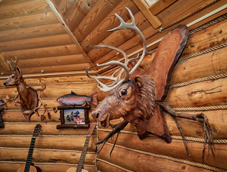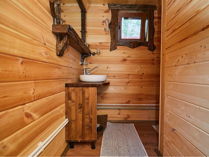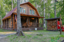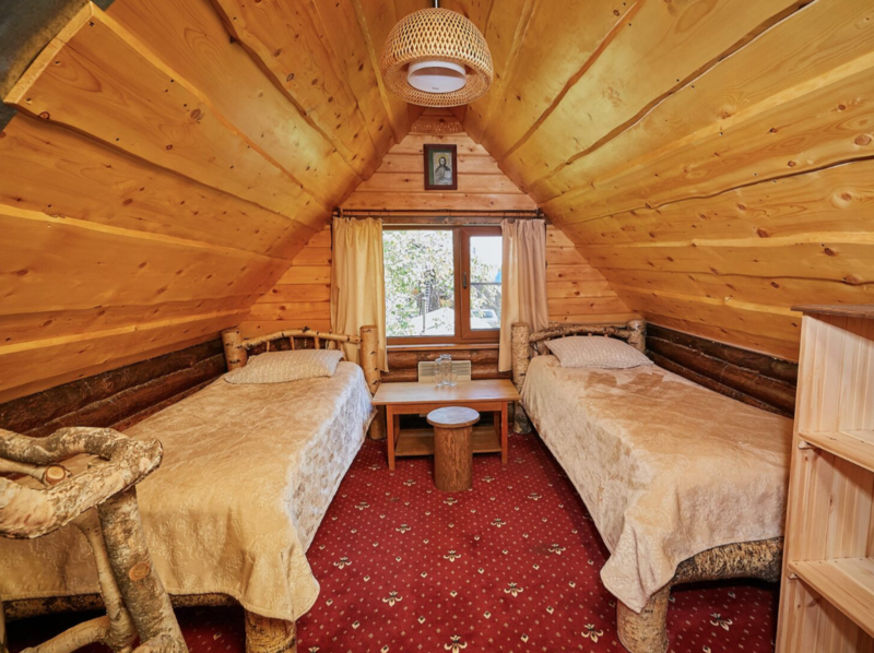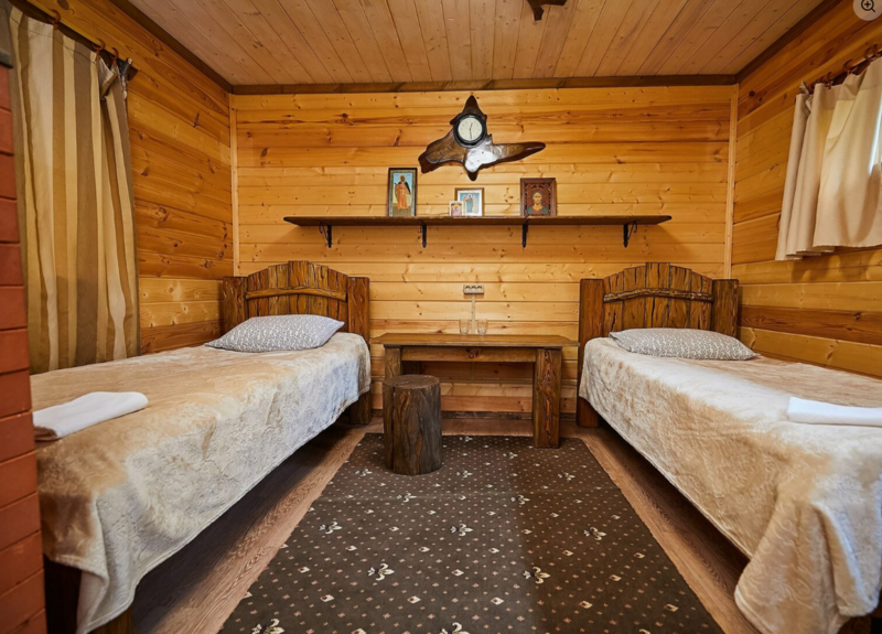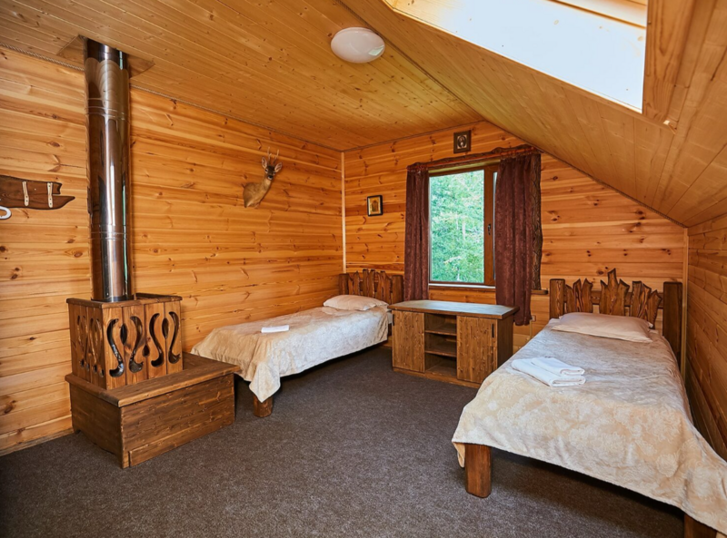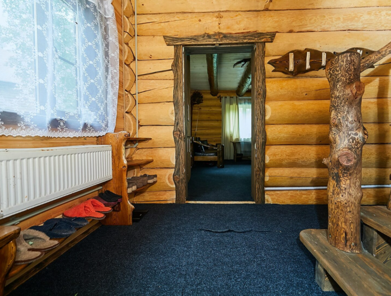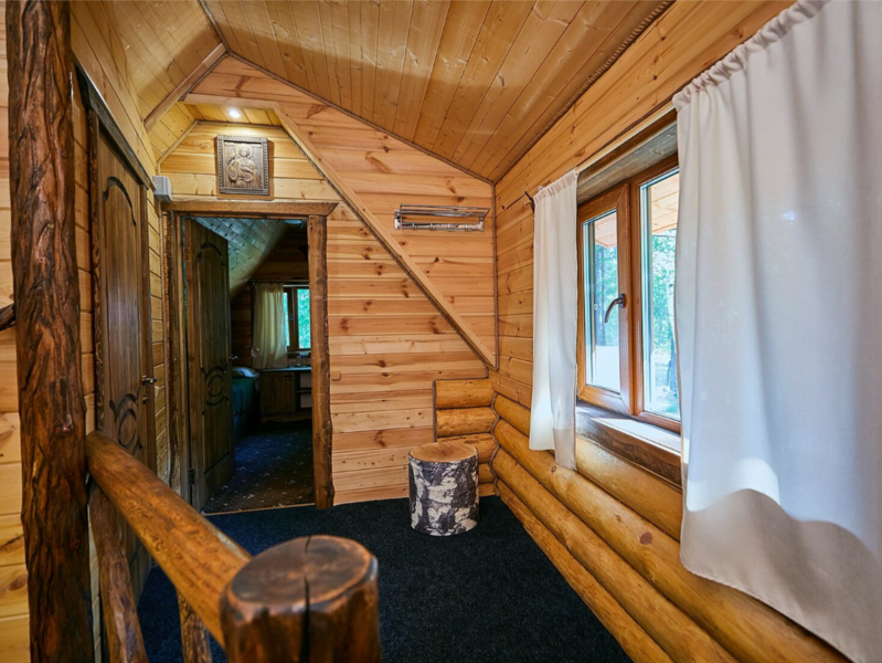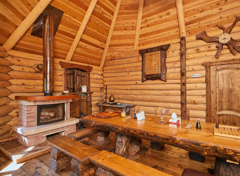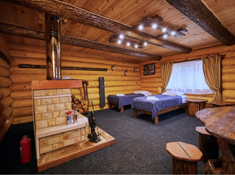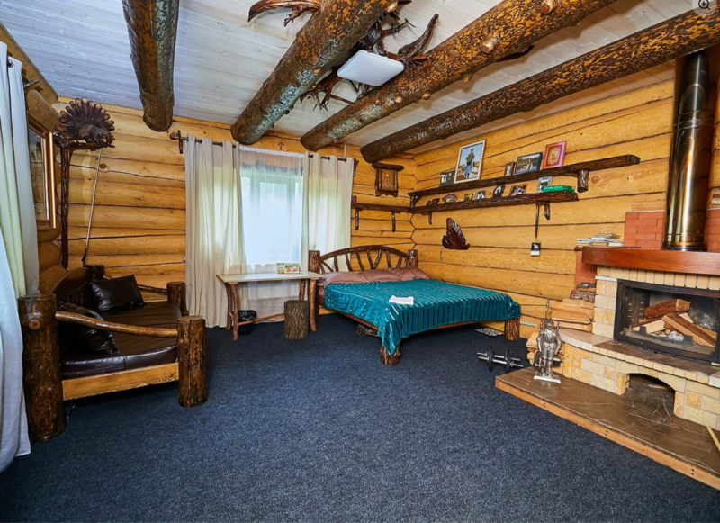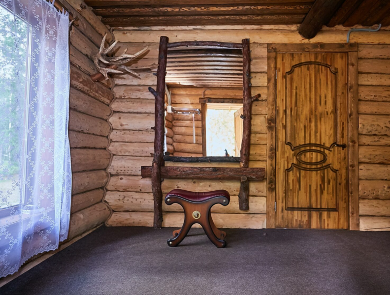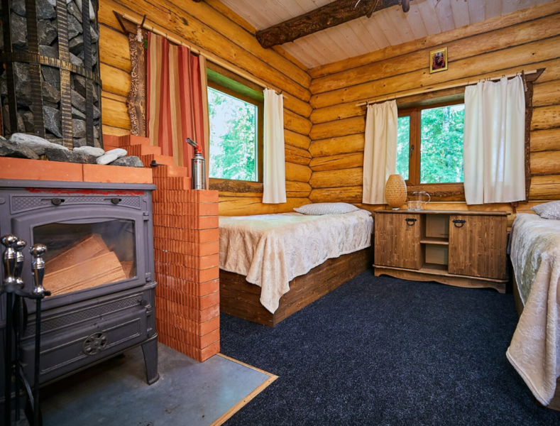 Для вас построено 9 бревенчатых домов, каждый со своим уникальным интерьером и декором. В домах установлены камины июле, удобные кровати и водопровод. База может принять до 33 человек за один заезд.