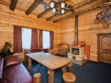 Камин, диван, стол, стулья, 4 односпальные кровати, туалет, водонагреватель, зеркало, душевая кабина, отопление.