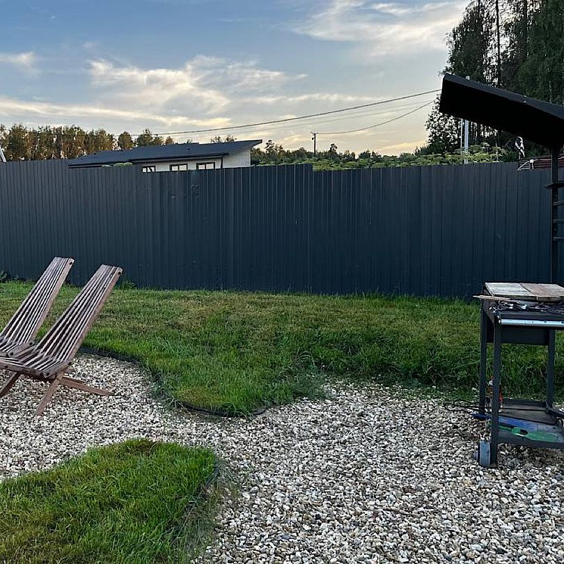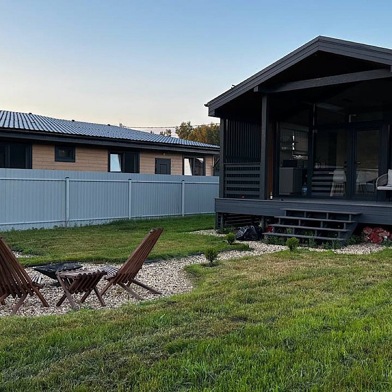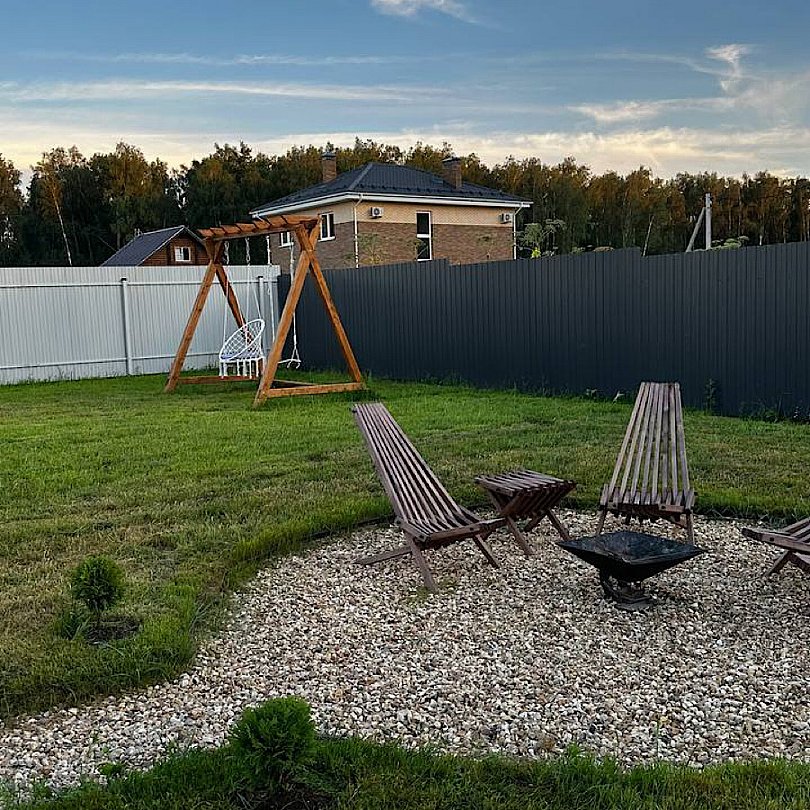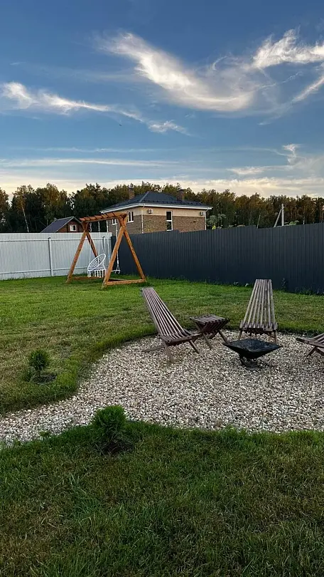 Для любителей отдыха на свежем воздухе предусмотрена костровая зона с креслами-кентукки, где можно наслаждаться теплом в любое время года. А для тех, кто ищет уединения и релаксации, внутри дома находится сауна, создающая атмосферу покоя и комфорта.