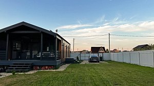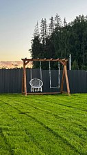 В доме есть спальня с кроватью 160х200, со шкафом, кухня-гостиная с диваном-кроватью, санузел, сауна и терраса. Удобная и стильная мебель, техника, вся необходимая посуда, чистое бельё и полотенца, также мыльные принадлежности.