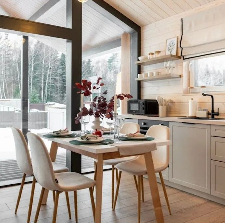 Интерьер «Домика» продуман до мелочей: удобная мебель, современная техника, посуда, свежее белье и полотенца создают атмосферу домашнего уюта. Высокоскоростной интернет Wi-Fi позволяет оставаться на связи, а доставка из ВкусВилл, Ozon, Пятерочки и Delivery Club обеспечивает удобство и комфорт.