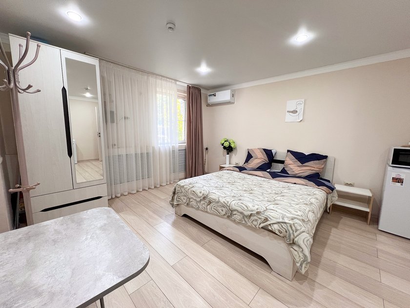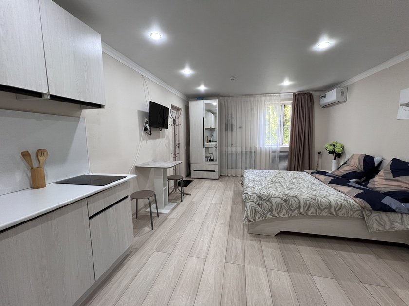 Уютная студия в самом центре города Минеральные Воды. Удобное местоположение позволит вам добраться до: десяти минут езды до железнодорожного вокзала и пяти минут до автовокзала. Десять минут до аэропорта на такси. Магазины, аптеки, кафе, рестораны в шаговой доступности.