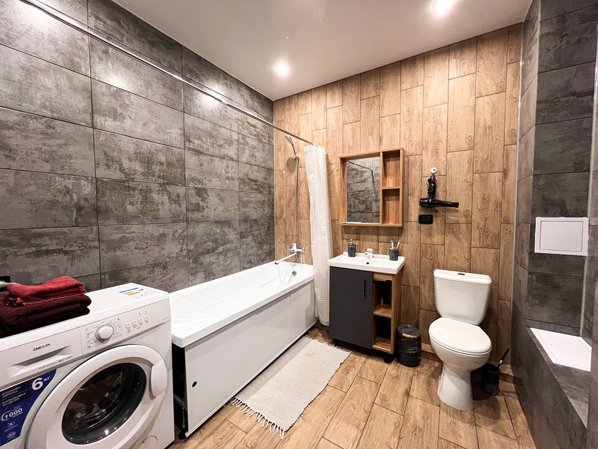 Квартира оснащена всем необходимым для комфортного проживания: сплит-система; холодильник; плита; Wi-Fi; утюг и гладильная доска; стиральная машина и стиральный порошок; микроволновая печь; фен; телевизор. Предоставляются чистое постельное белье и полотенца. Кофе, чай и принадлежности для личной гигиены также включены.