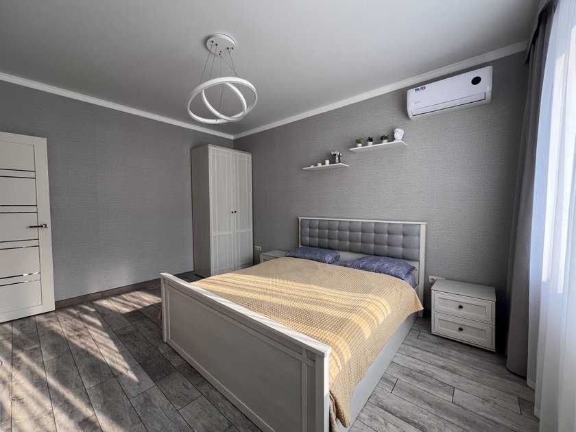 Оборудована всем необходимым для комфортного проживания: двуспальная кровать, раскладной диван, бытовая техника, Wi-Fi, кабельное телевидение, полностью оборудованная кухня.