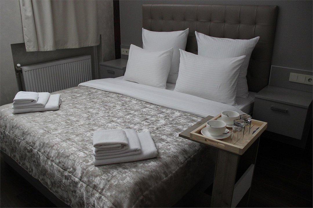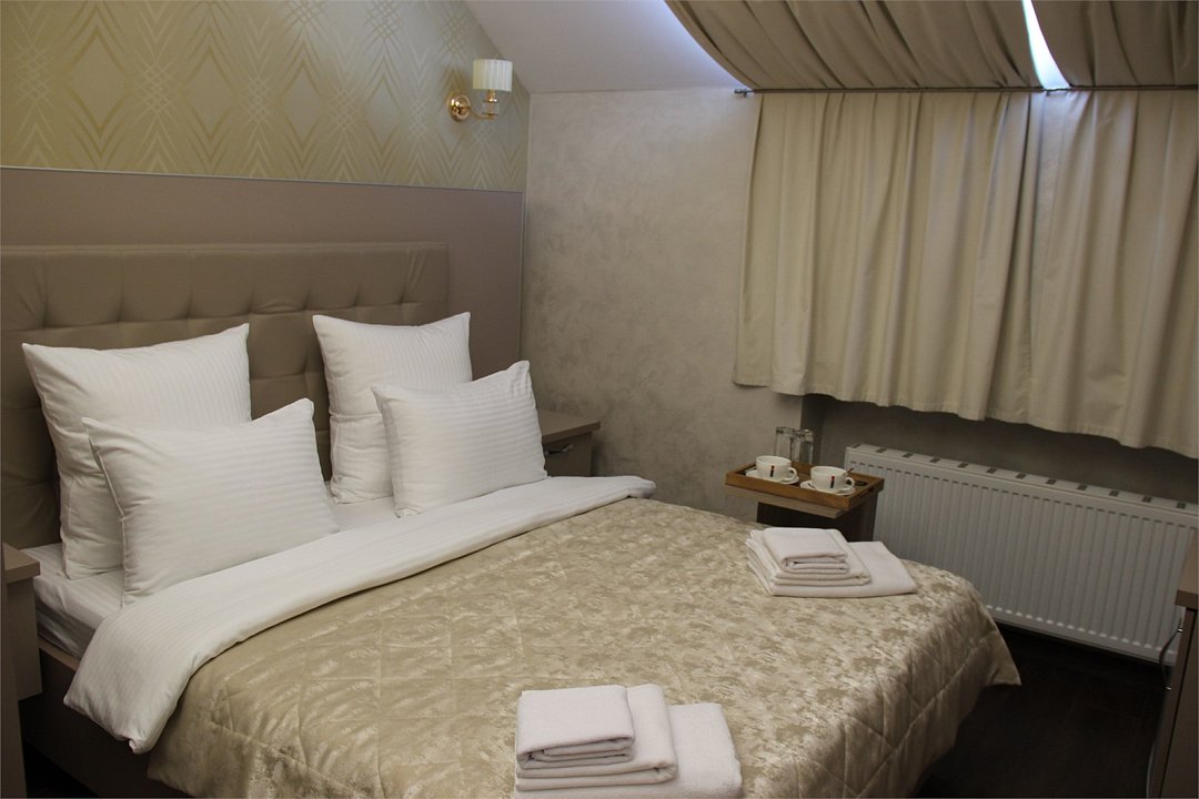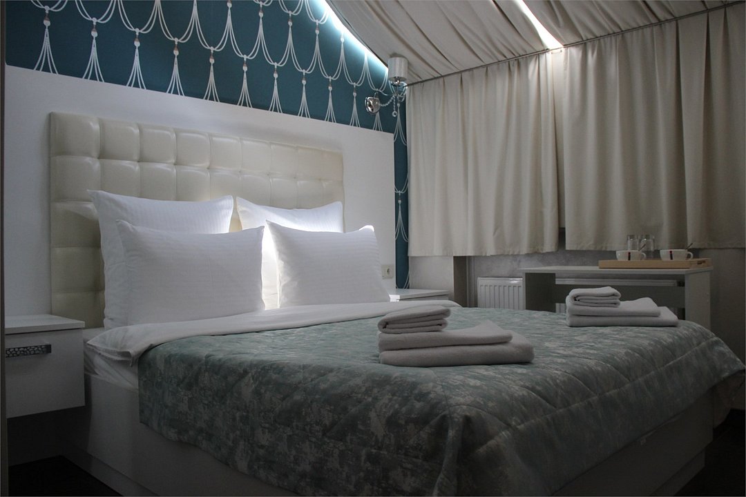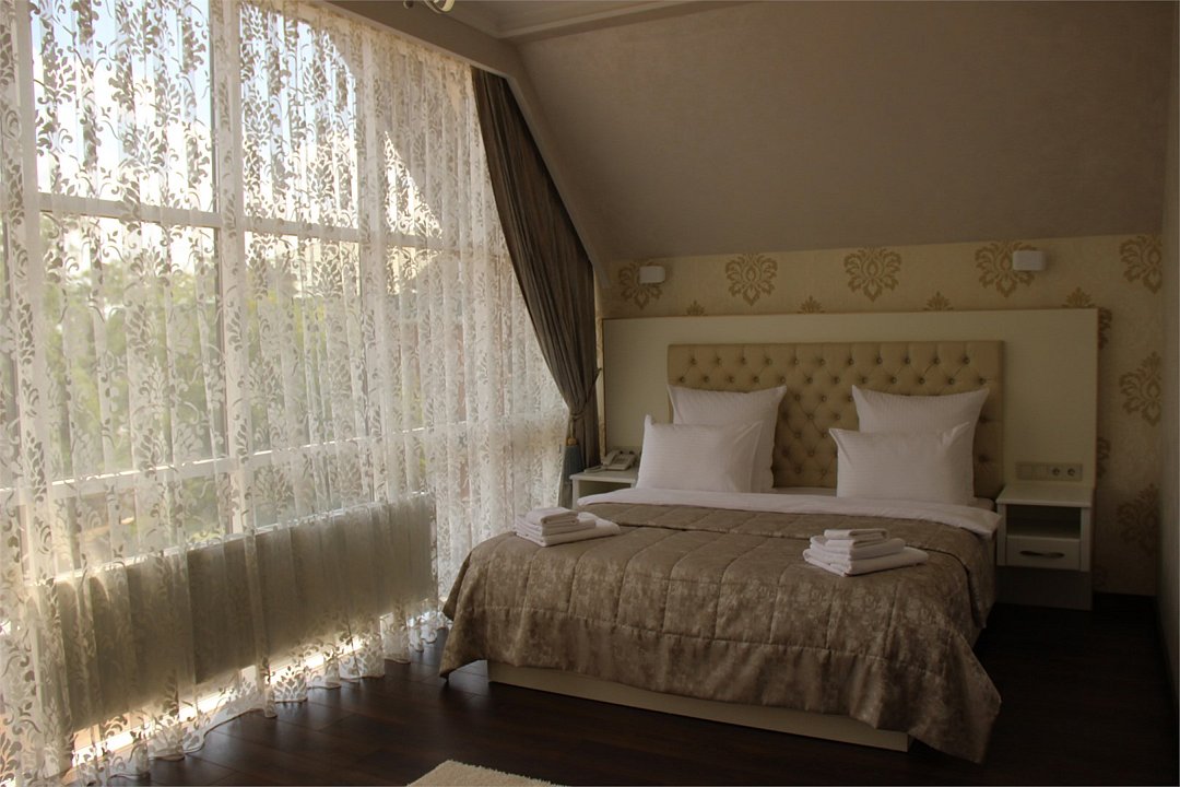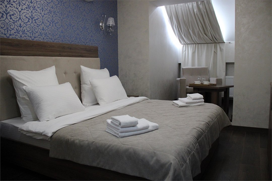 На первом этаже отеля работает ресторан. Летняя веранда ресторана, парковка, доставка еды из ресторана в номер, оплата картой, бизнес-ланч, еда на вынос, кофе, детская комната. На этажах имеется 20 жилых номеров, 5 основных категорий: Стандартный 2-местный, Стандартный бизнес, Полулюкс, 2-комнатный люкс с террасой, Свадебный люкс, Дизайнерский люкс.