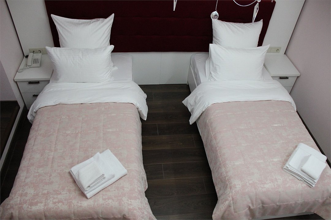 Номера идеально подходят как для индивидуального, так и для семейного проживания. Во всех номерах есть просторные ванные комнаты с душем. Комфорт и уют в номерах созданы в теплых тонах с декоративными покрытиями и текстилем, а также мягкими изголовьями. Сплит-система в каждом номере позволяет поддерживать комфортную температуру воздуха и умеренную влажность воздуха 24 часа в сутки.