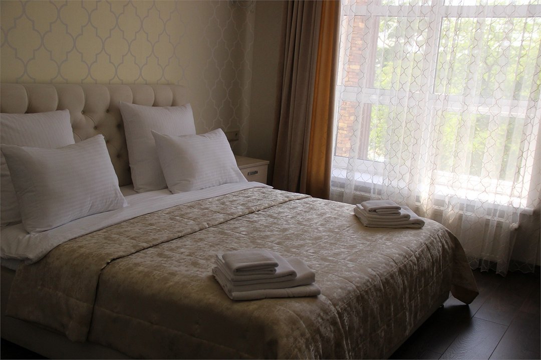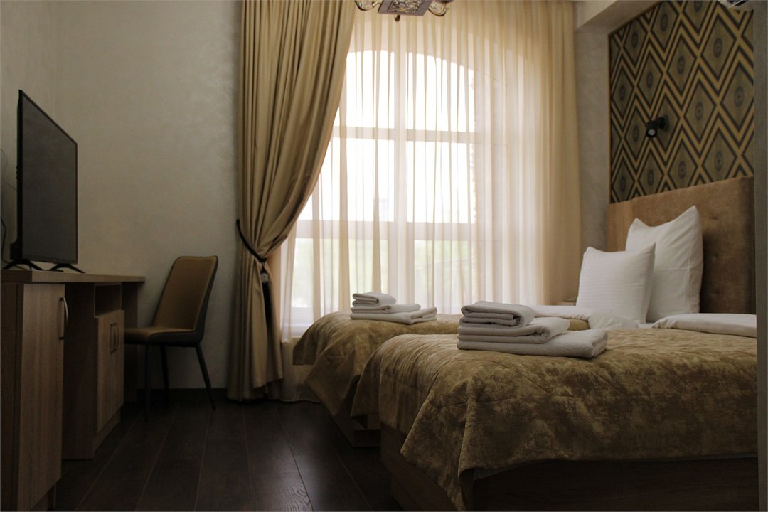 Светлые и уютные номера оснащены сплит-системой, холодильником и телевизором с плоским экраном и спутниковыми каналами. В ванной комнате предоставляются бесплатные туалетно-косметические принадлежности, фен, халаты и тапочки. К услугам гостей бесплатный Wi-Fi, ресторан, терраса и бар. Для гостей обустроена платная крытая охраняемая парковка.