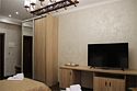 Однокомнатный номер повышенной комфортности площадью от 35 кв.м выбирают гости, предпочитающие идеальные условия проживания вне дома. Комната имеет условное зонирование на зону спальни и зону гостиной, оборудованную набором мягкой мебели. Просторный санузел оборудован душевой со стеклянным ограждением. В отделке номеров использованы современные гипоаллергенные материалы. Дизайн комнат и санузлов выполнен в теплых нейтральных тонах с аспектом на стильных деталях.Услуги и удобства