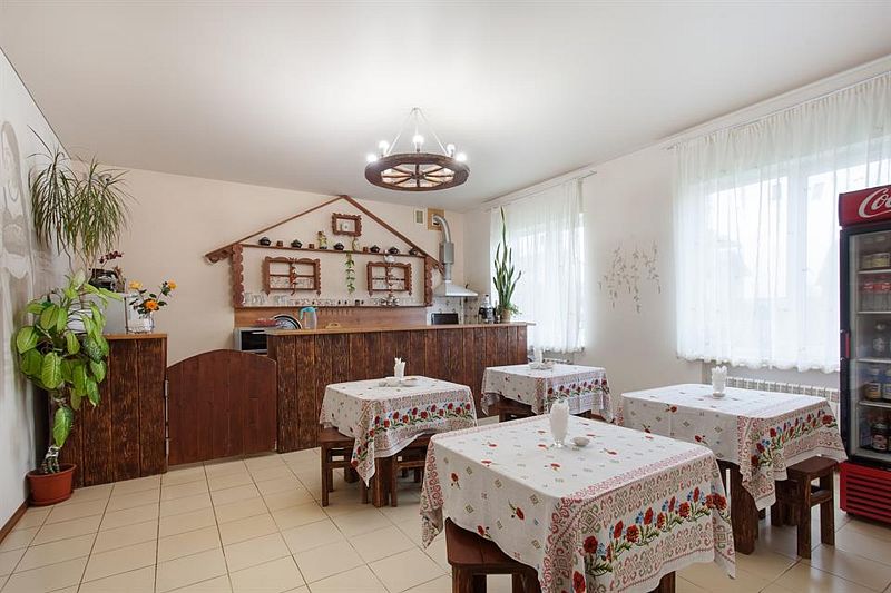 В гостевом доме предусмотрена уютная столовая, где гости могут разогреть уже готовую еду или самостоятельно приготовить что-то вкусное. Здесь есть все необходимое для приготовления и сервировки блюд.