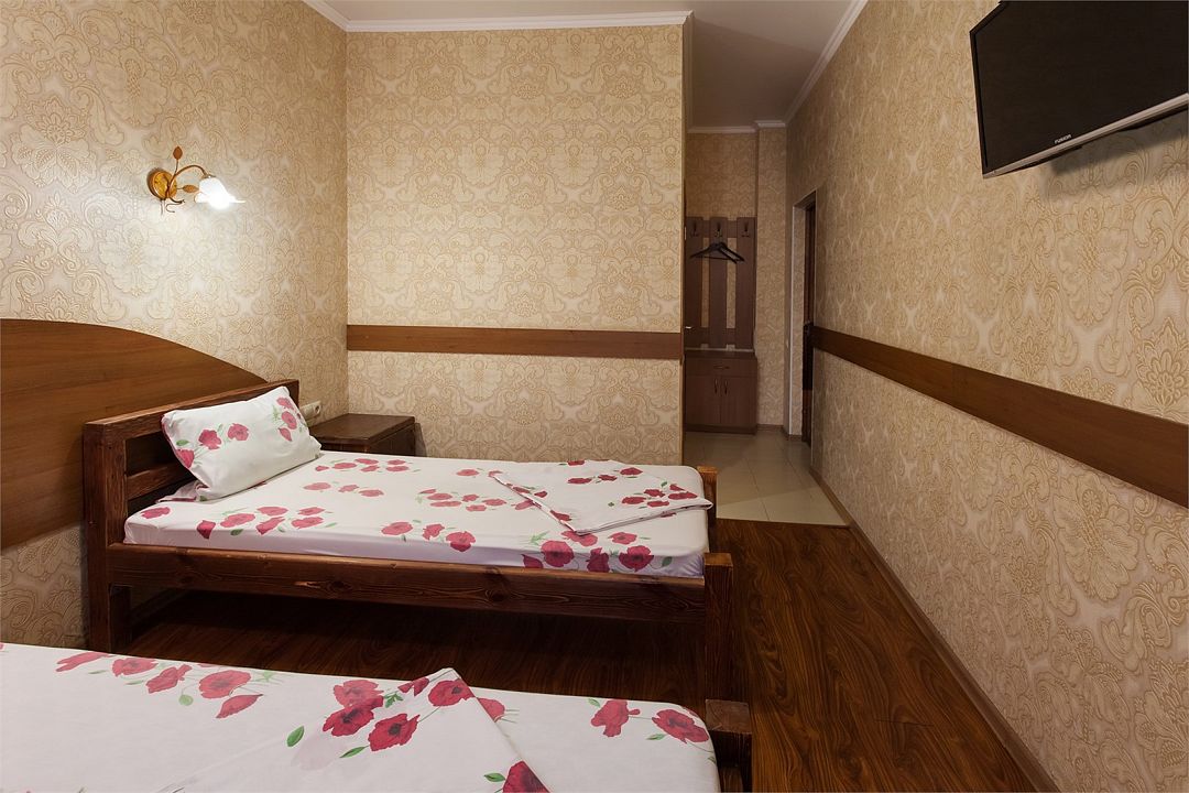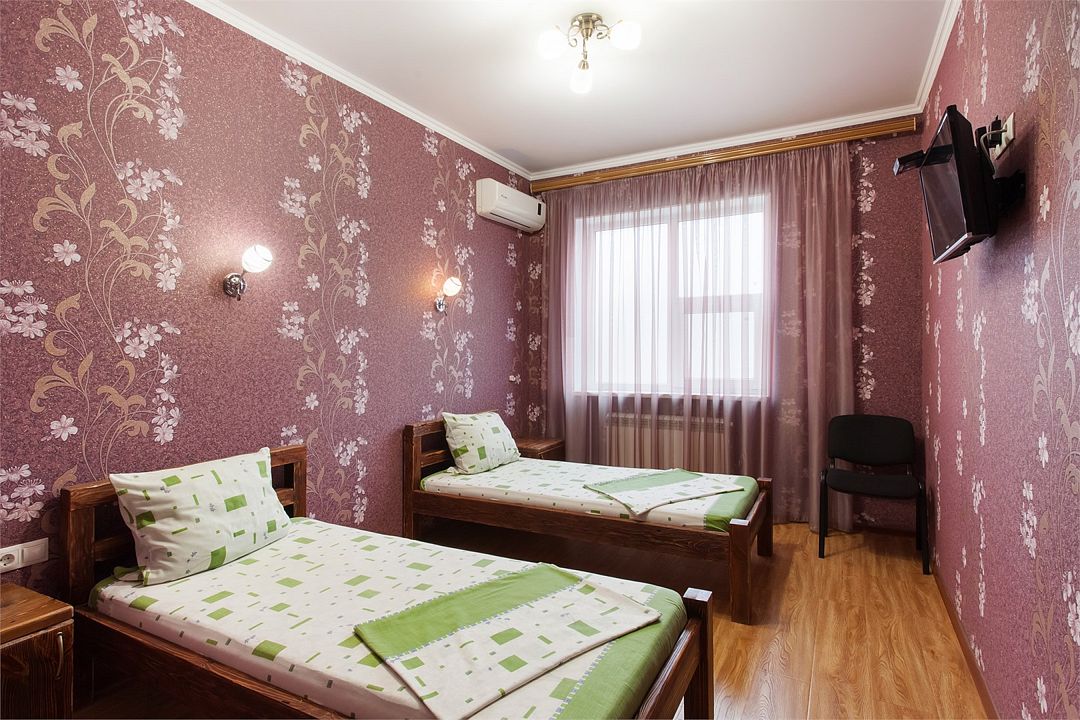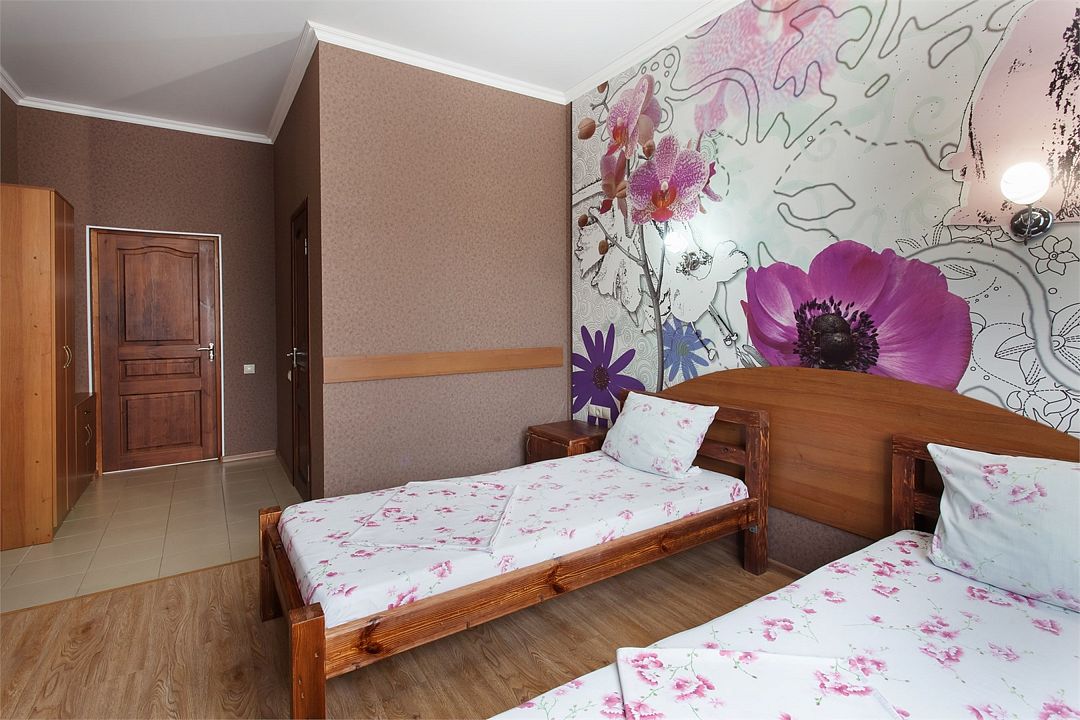 Номер с раздельными кроватями подойдет для отдыха с семьей или с друзьями. В номере есть окно, телевизор, везде тёплые полы, номер закрывается на ключ. Кухонная и ванная зоны общие.Услуги и удобства