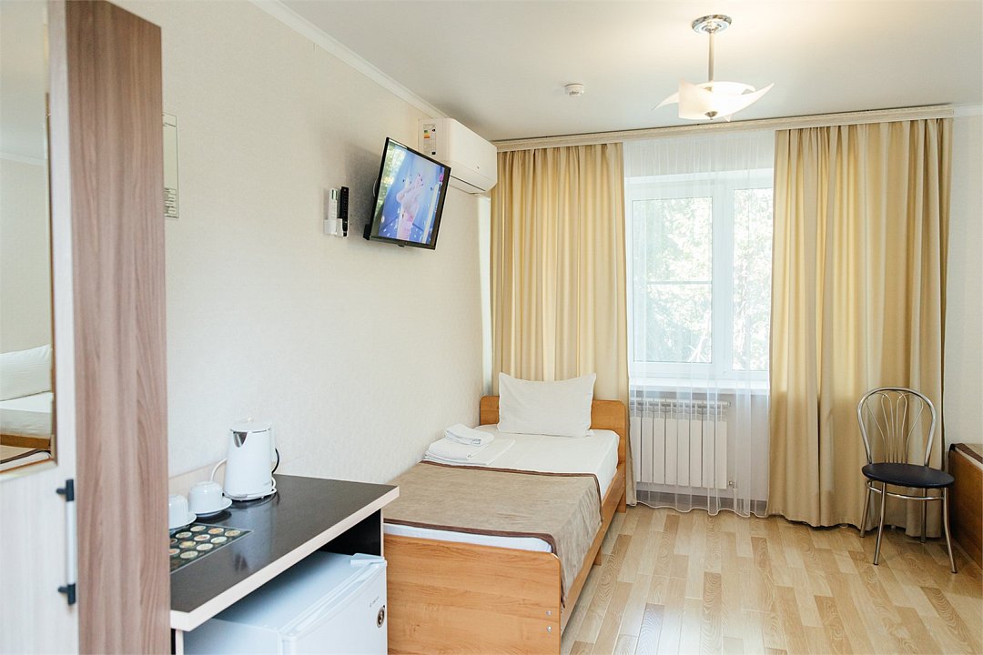 телевизор, спутниковое телевидение, Wi-Fi, интернет, кондиционер, фен, душевая кабина, водонагреватель, тапочки, две односпальные или большая двуспальная кровать, шкаф для одежды, письменный стол, багажная тумба, зеркало, унитаз, раковина, отопление, душ, ламинат, столовые приборы, стул, туалетные средства, номер для некурящих, антибактериальное средство для рук, уборка номера, набор для приготовления чая и кофе, услуги прачечной (платно), вешалки-плечики, бутилированная водаВ номере