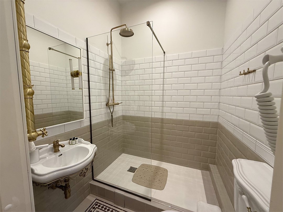 телевизор, Wi-Fi, телефон, кондиционер, светильник, фен, электронные замки, ванная комната, двуспальная кровать, полутораспальная кровать, вешалки, зеркало, ковер, чайный набор, сейф, унитаз, раковина, душ, вид на город, две спальни, вид во двор, стаканы, стол, мини-холодильник, пуфик, чайная станция, бутилированная водаВ гостиничном номере