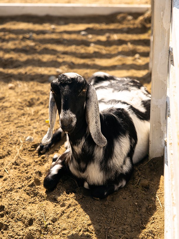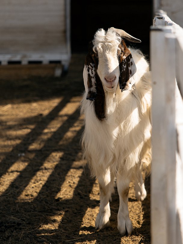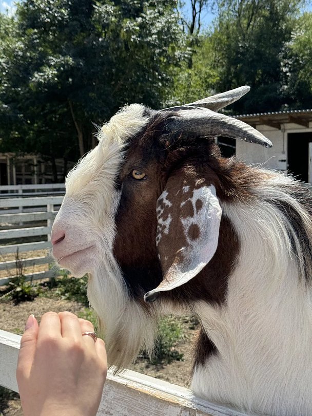 Есть красивая фотозона для запечатления ваших лучших моментов на ферме. Помимо кроликов, здесь живут нубийские козочки Фиона и Ника, барашки-дорперы, валийцы-керри-хиллы и камерунские барашки. А также местная звезда — козел Гоша, который обожает делать селфи с гостями.