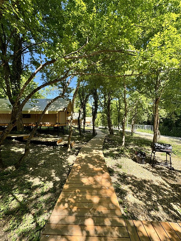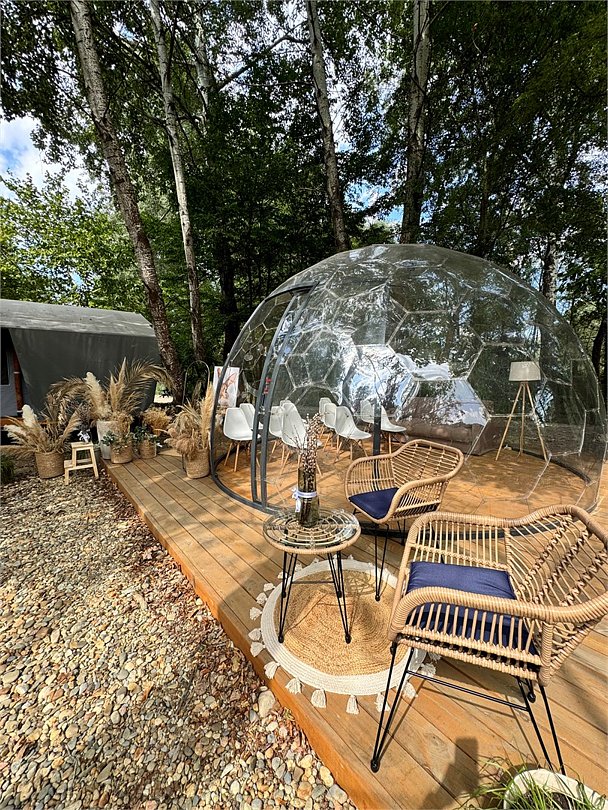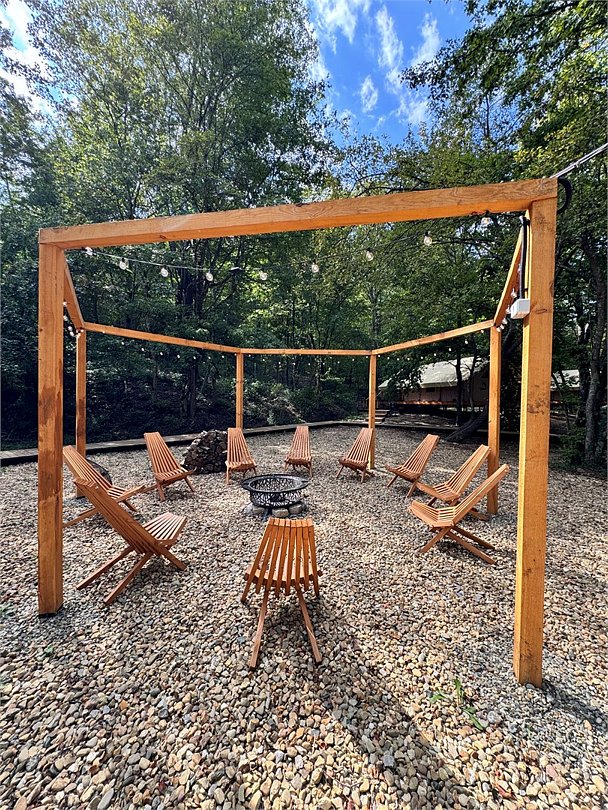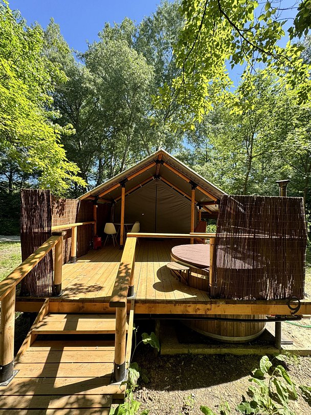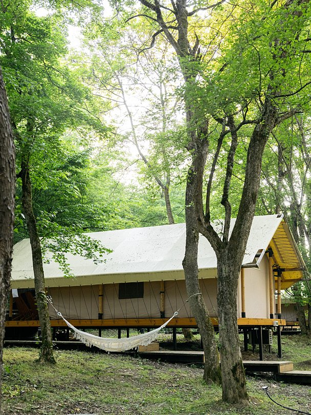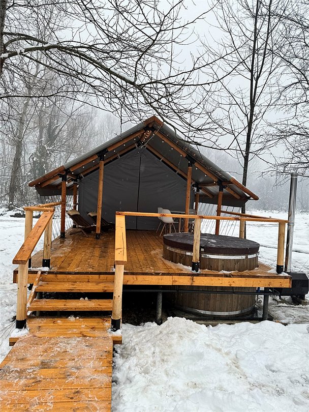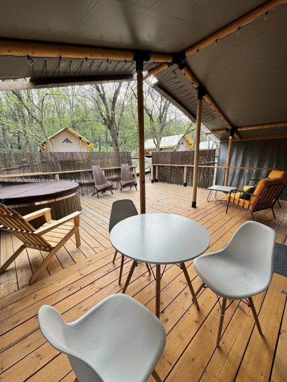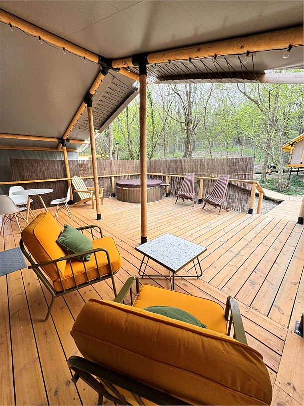 У каждого тента есть персональное фурако (подогреваемая бочка на вашей террасе) и личная зона барбекю рядом с террасой.