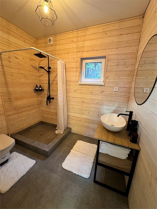 Система теплого пола, посуда и мини-кухня, банные принадлежности, фен, личная зона барбекю и все необходимое для комфортного отдыха, а также подогреваемое джакузи.