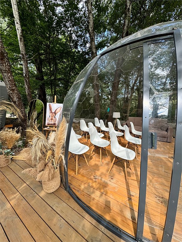 В этой локации вы сможете отметить свой праздник, провести небольшую конференцию или же просто провести время со своей семьей. В куполе атмосферно когда идет дождь или снег, ведь он абсолютно прозрачный.