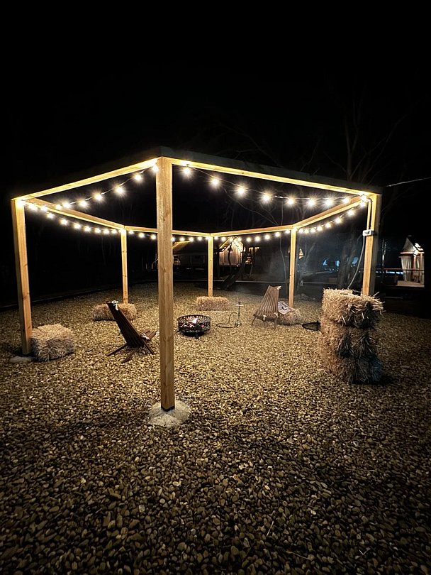 На территории костровой зоны можно послушать песни под гитару, пожарить маршмеллоу на костре и просто насладиться чистейшим воздухом и теплой атмосферой.