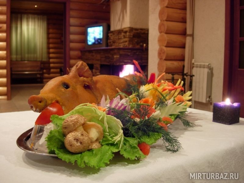 В-третьих, какой праздник без вкусной еды и горячительных напитков? Ресторан «Зелёного дома» с удовольствием распахнет свои двери, превратившись в банкетный зал. Вам предложат меню с уникальными таежными деликатесами. Более того, если Вы решите совместить Ваш отдых с охотой, то повара с радостью приготовят для праздничного стола добытую вами дичь. (Скидка по карте гостя на проведение банкета 20%).