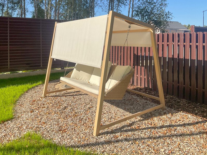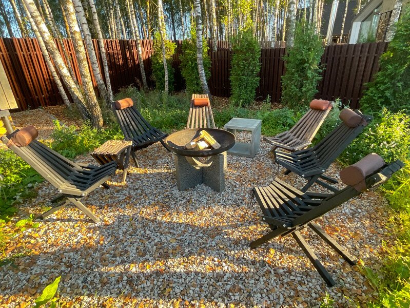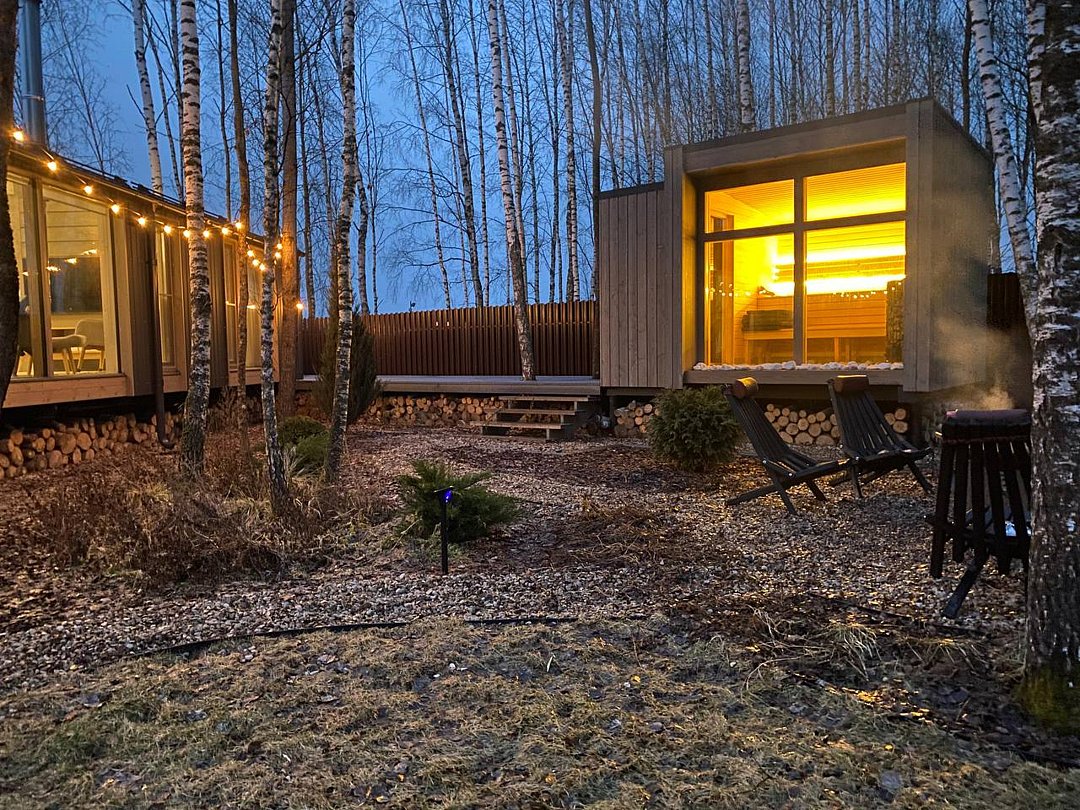 На территории есть уютные качели, а на террасе дома кресло-гамак, где вы сможете провести время за чтением своей любимой книги. Вечером расслабиться вам поможет сауна в доме и горячая купель под открытым небом, а после вы сможете отдохнуть у костра с чашкой ароматного чая.